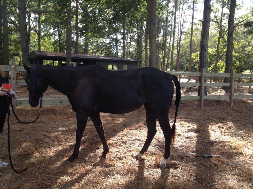A messy but braided tail.