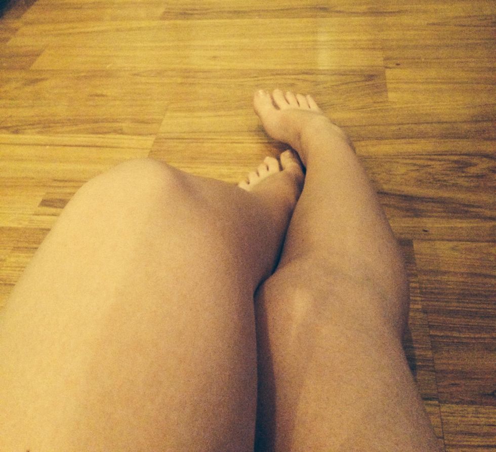 First you want to get in the shower with as warm of water as you can stand. Then get your body scrub, and gently rub it on your legs.