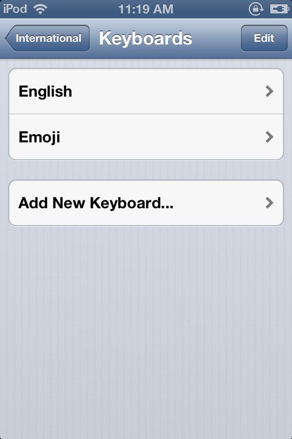 For this guide, I temporarily removed my Emoji keyboard. Tap "Add New Keyboard."