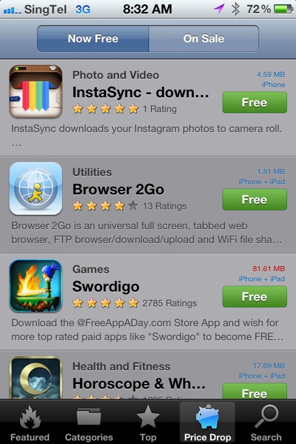 Price Drop > Free will show you a list of free stuffs in AppDailyStore