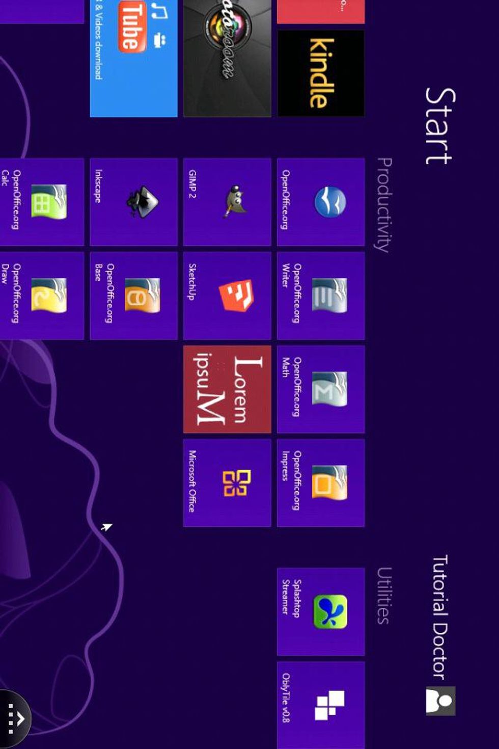 I added them to my Start Screen on Windows 8. Tapping on the Open Office .org icon...