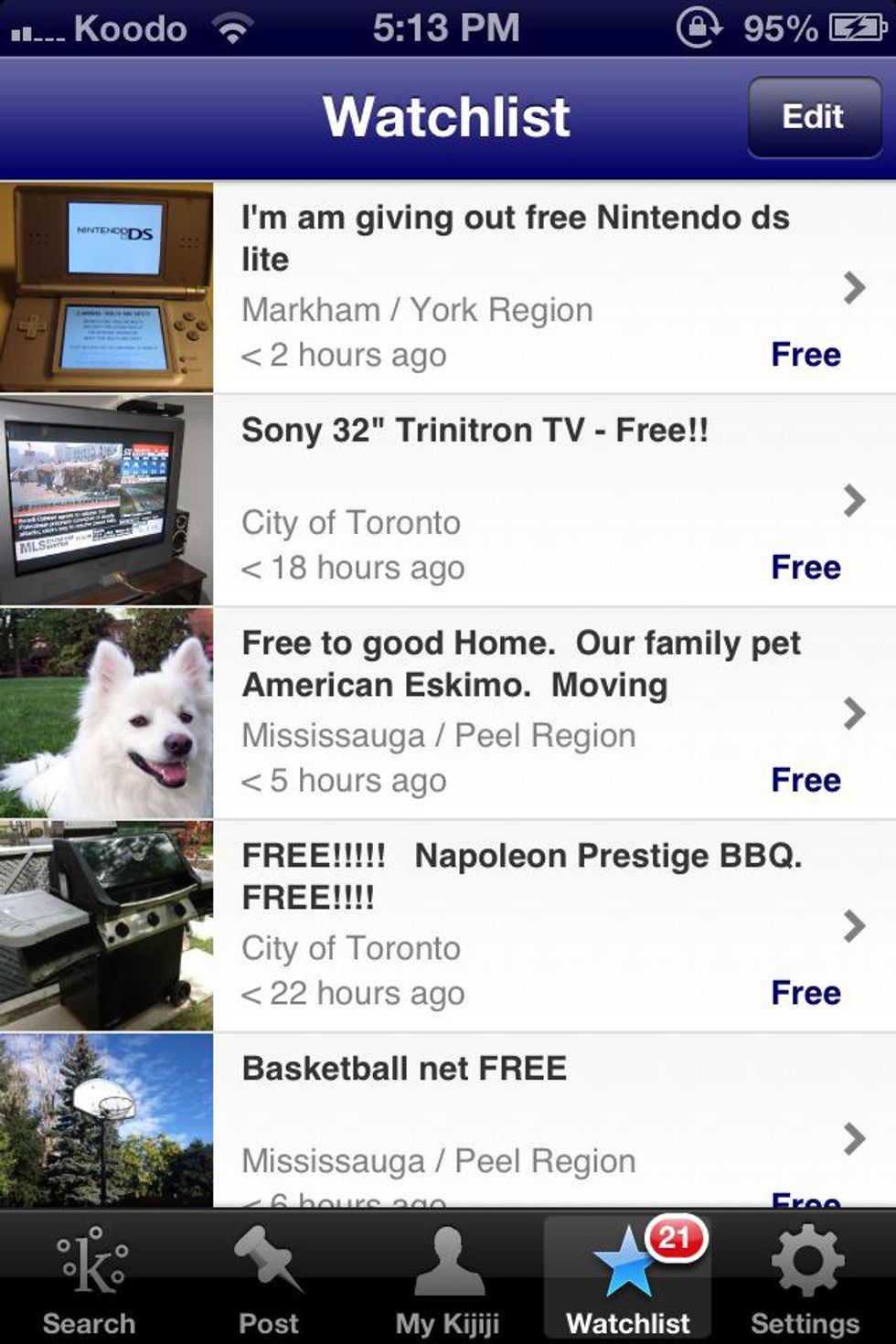 Look at your free local kijiji ads! Most of the good things go quickly, so check often!