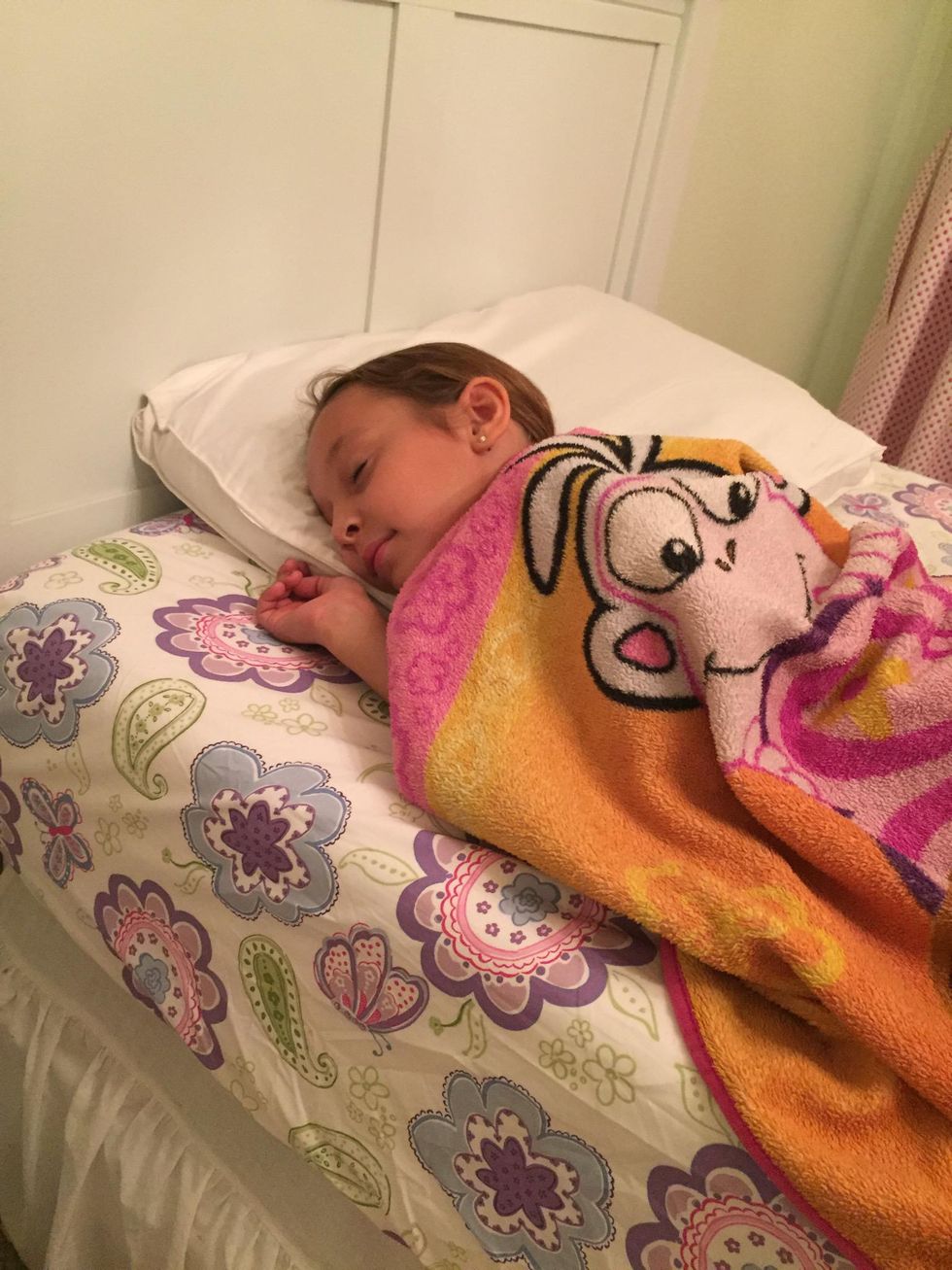 First I get my pj's on.Next, I brush my teeth.Then, I brush my hair.Next, I put my hair in a pony.Then, I get my cozy blanket and pillow.Last, I curl up in my bed and get some rest.