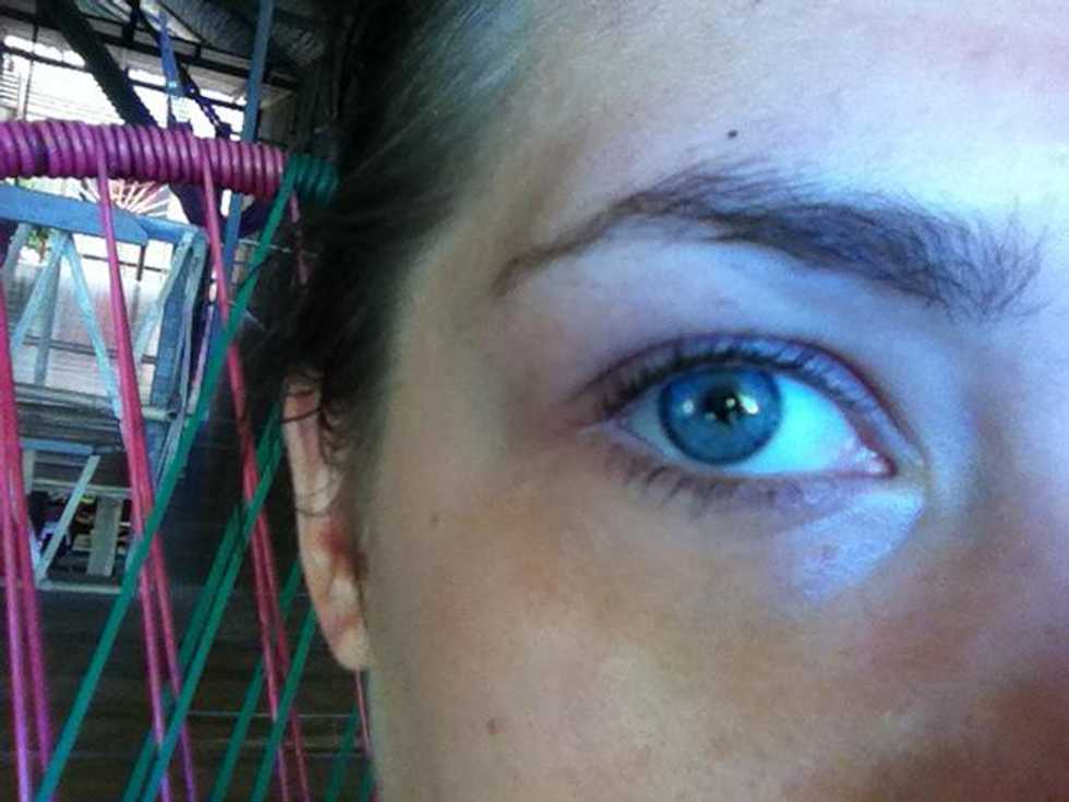 Press with both of your thumbs the spots right below where your eyebrows start. Find the spot that feels like tingling pain when pressed hard. You need to press sort of upward towards the bone.