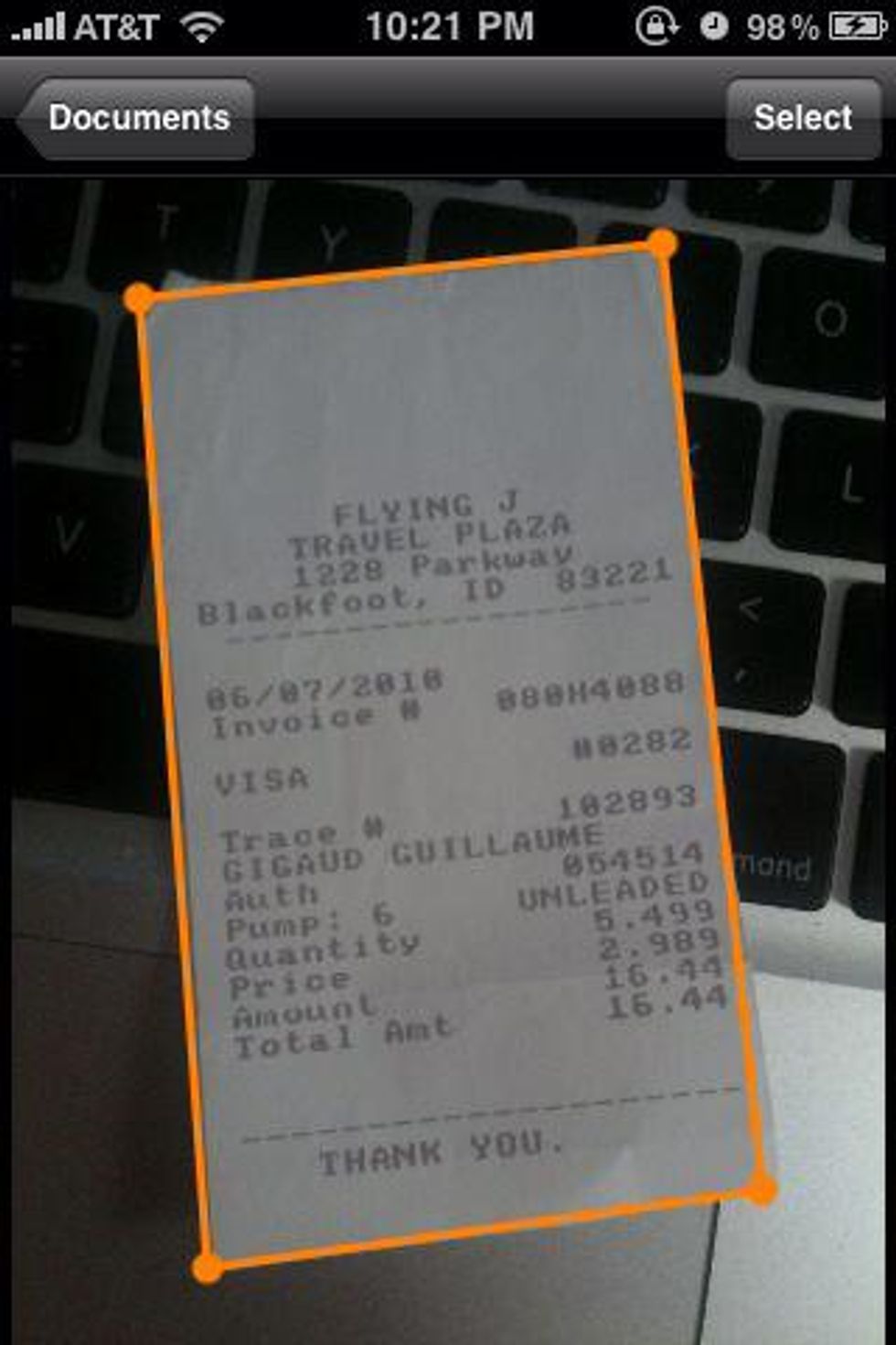Genius Scan let's you use your phones camera to "scan" receipts, whiteboards, documents, and even photos. It automatically corrects perspective and enhances image quality. Then share via the cloud.
