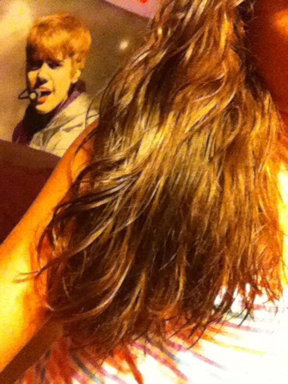This is my har after I have given it it's vitamins! And yes that is Justin Bieber behind me. Don't mind him, he's just creepin'. Haha