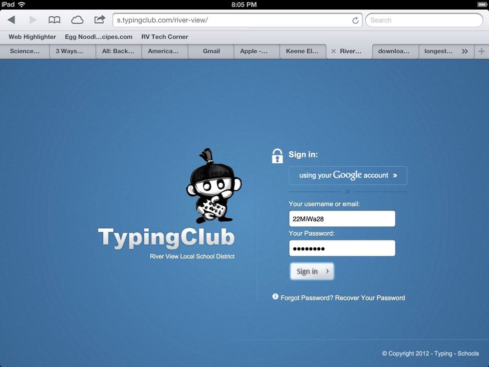 To access the site, you need to go to this URL: http://s.typingclub.com/river-view/