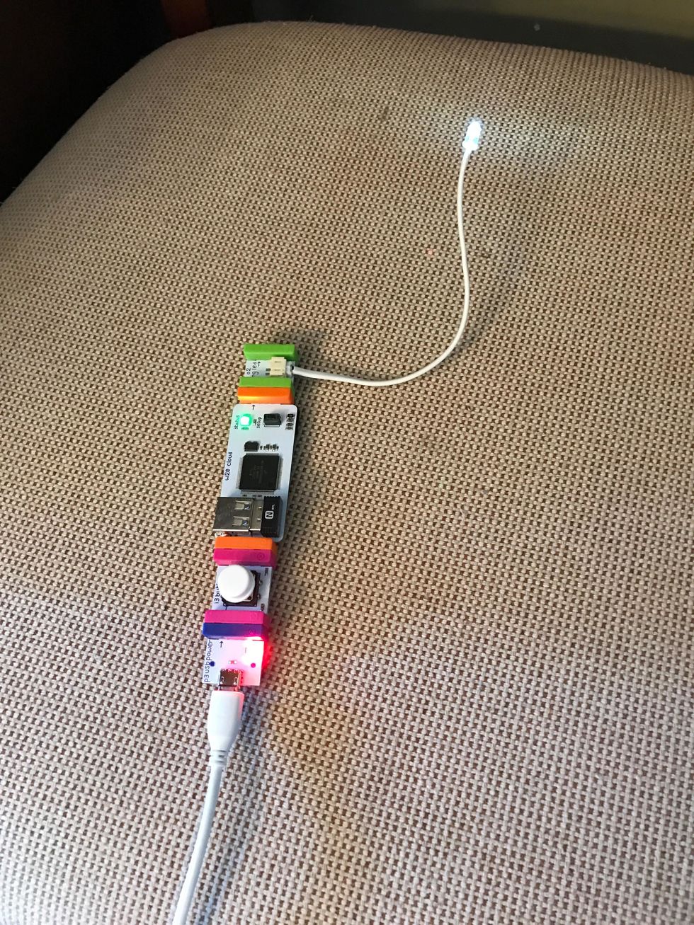 If you continue to follow the tutorial, you will advance to activities that include receiving a signal from the littleBits activating things in the game (i.e. press the button to open a door)