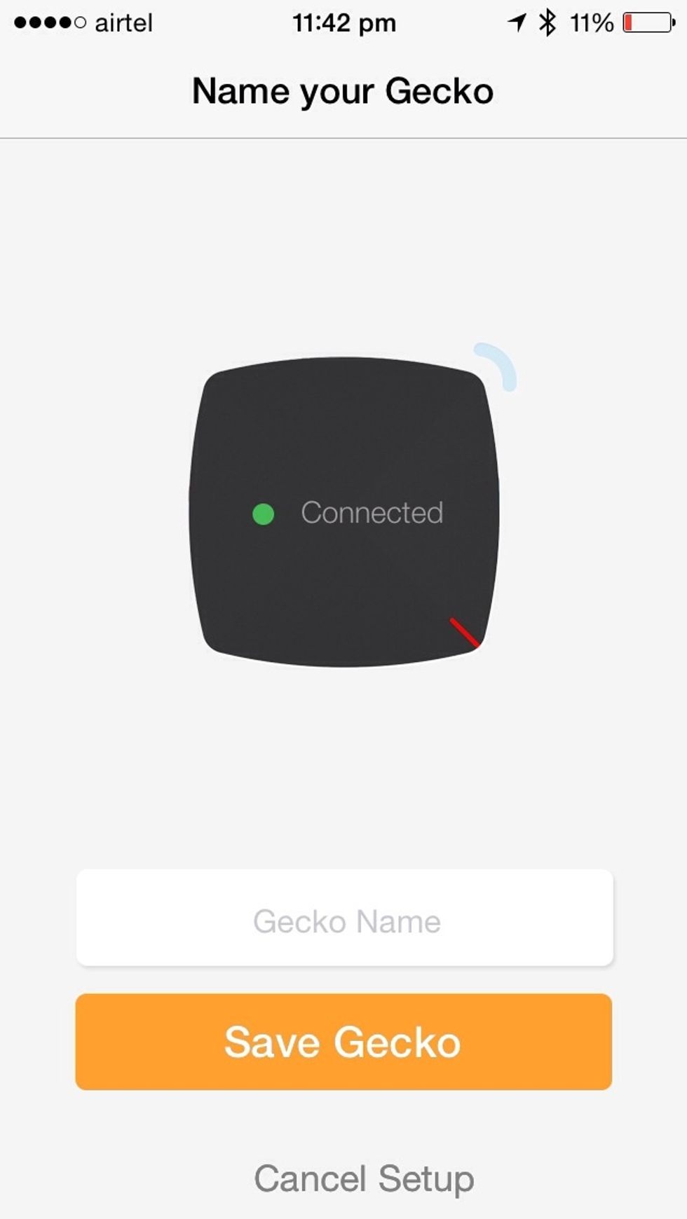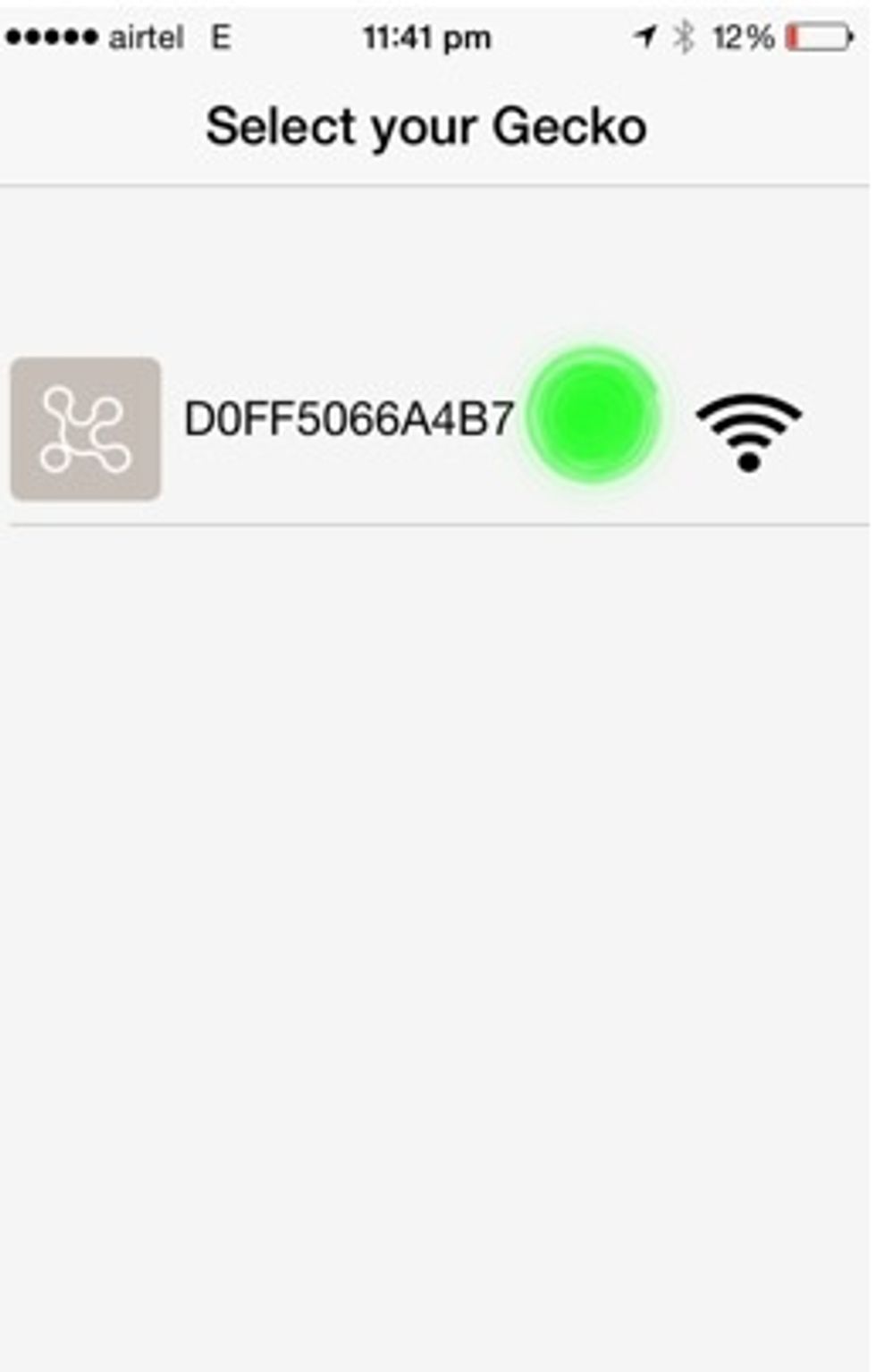 In the next screen you will see a list of gecko tags that are ready to get connected. Once you see a line item, tap on to initiate connection. After that next few screens are self explanatory.