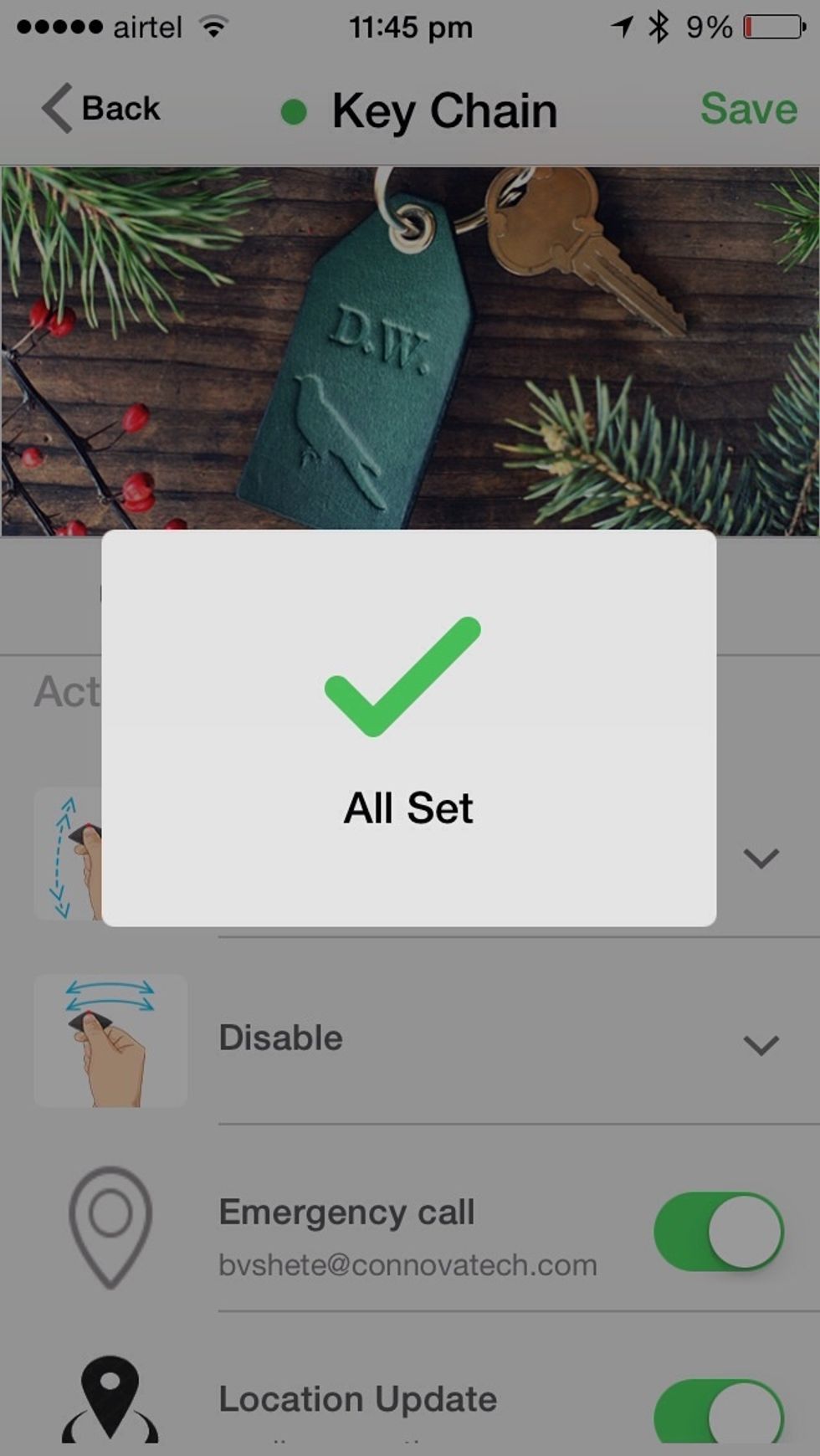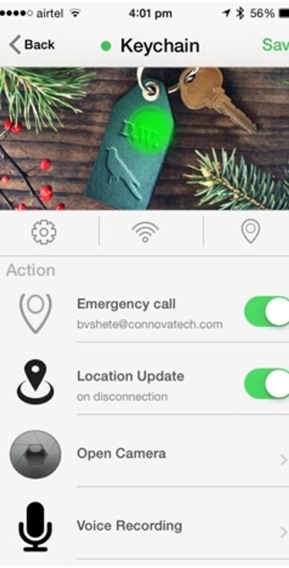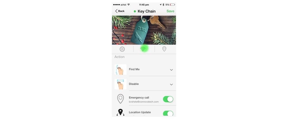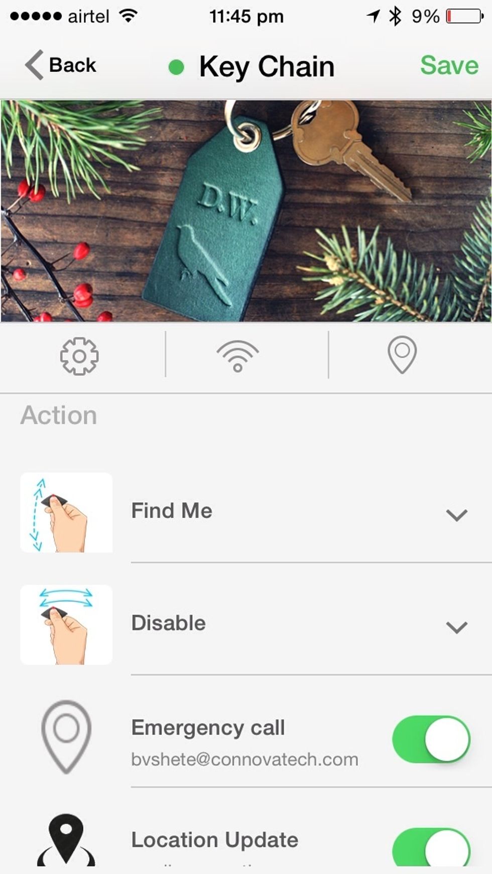 You can see that the Radar indicates how far is your gecko based on the signal strength which could indicate the distance from phone to the tag. tap in the Center, gecko will blink and beep again.