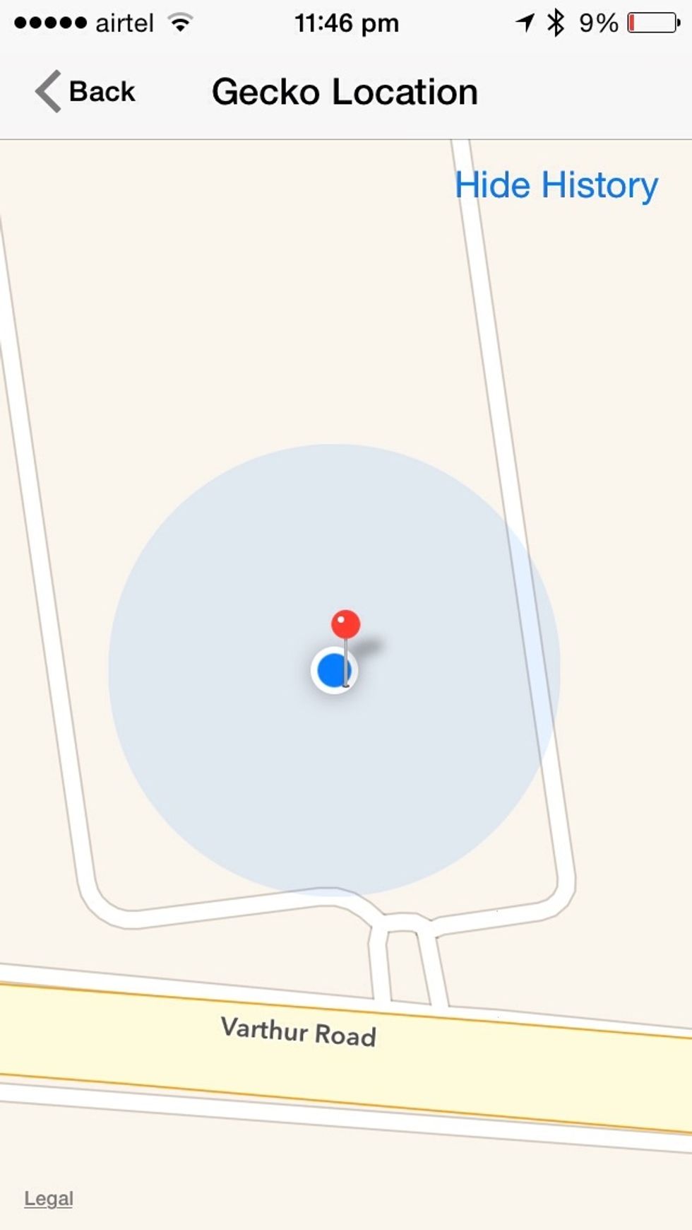 Another important feature is to show where gecko tag was disconnected last time on the map For this, tap on the location icon