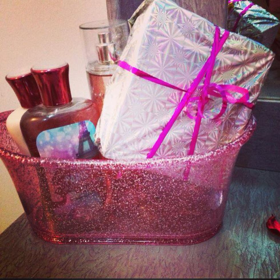 نحتاج الى بعض الأدوات ؛ لنقوم بعمل تغليف الهديه 💝✂🎋🎀🎁💝قمت بترتيب الأدوات وهي (مقص✂/ورق تغليف /شريطه🎀/علبة الهديه 🎁)قمت بتغليف الهديه گمآ موضح بالصوره🎋🎀🎋وضعت الشريطه على الهديه لتزيينها 🎀💝💝🎀🎁🎁انتهينآ من تغليف الهديه 👍