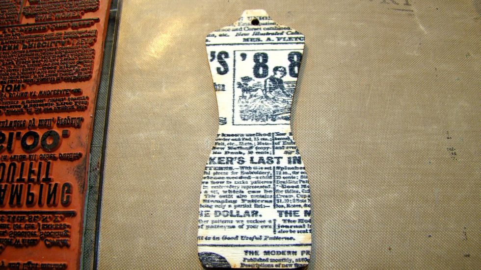 Apply random pieces of dress pattern to your tag using Mod Podge... allow to dry completely.