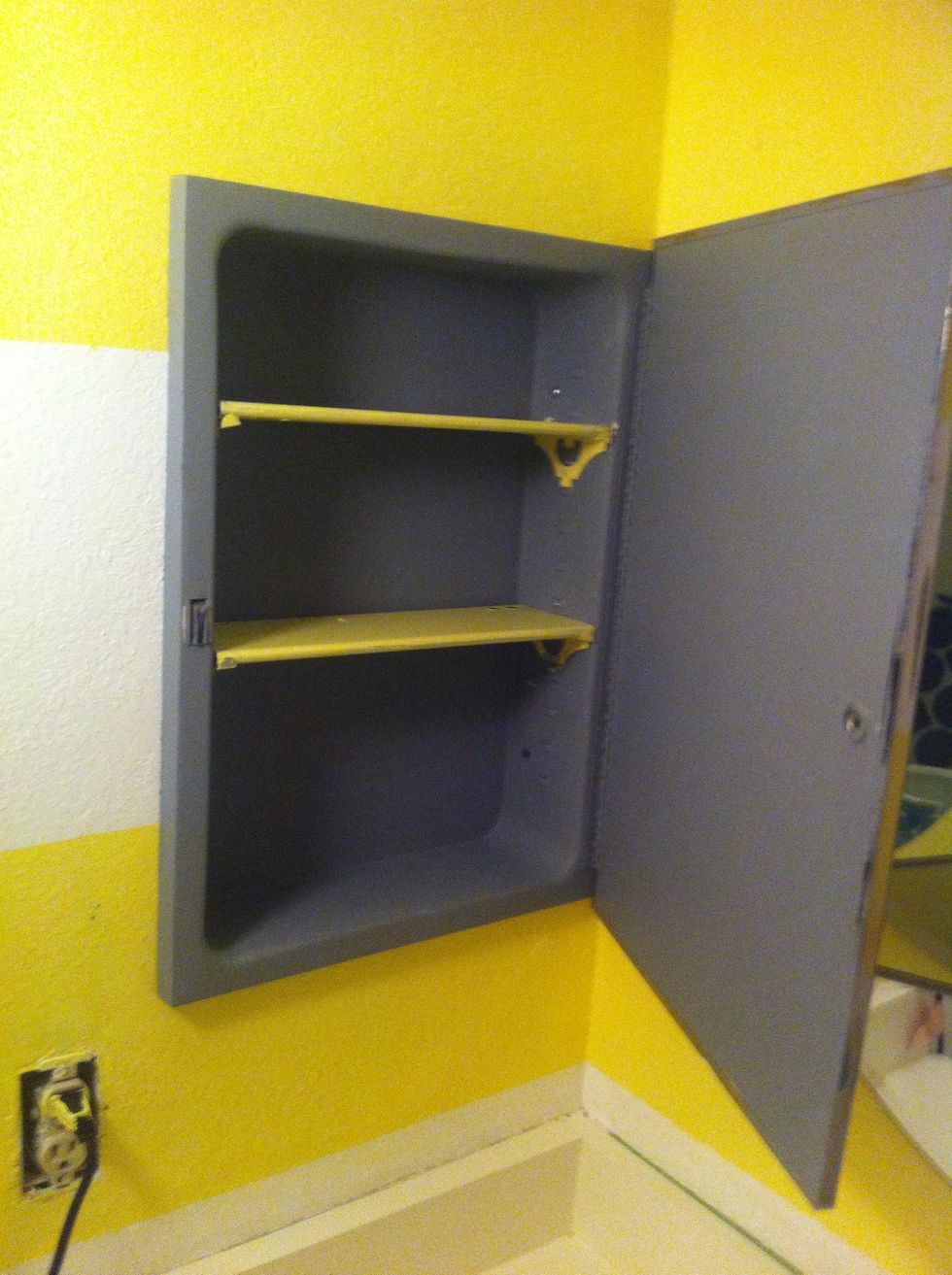 I painted the edge of the medicine cabinet because I like the grey and yellow contrast.