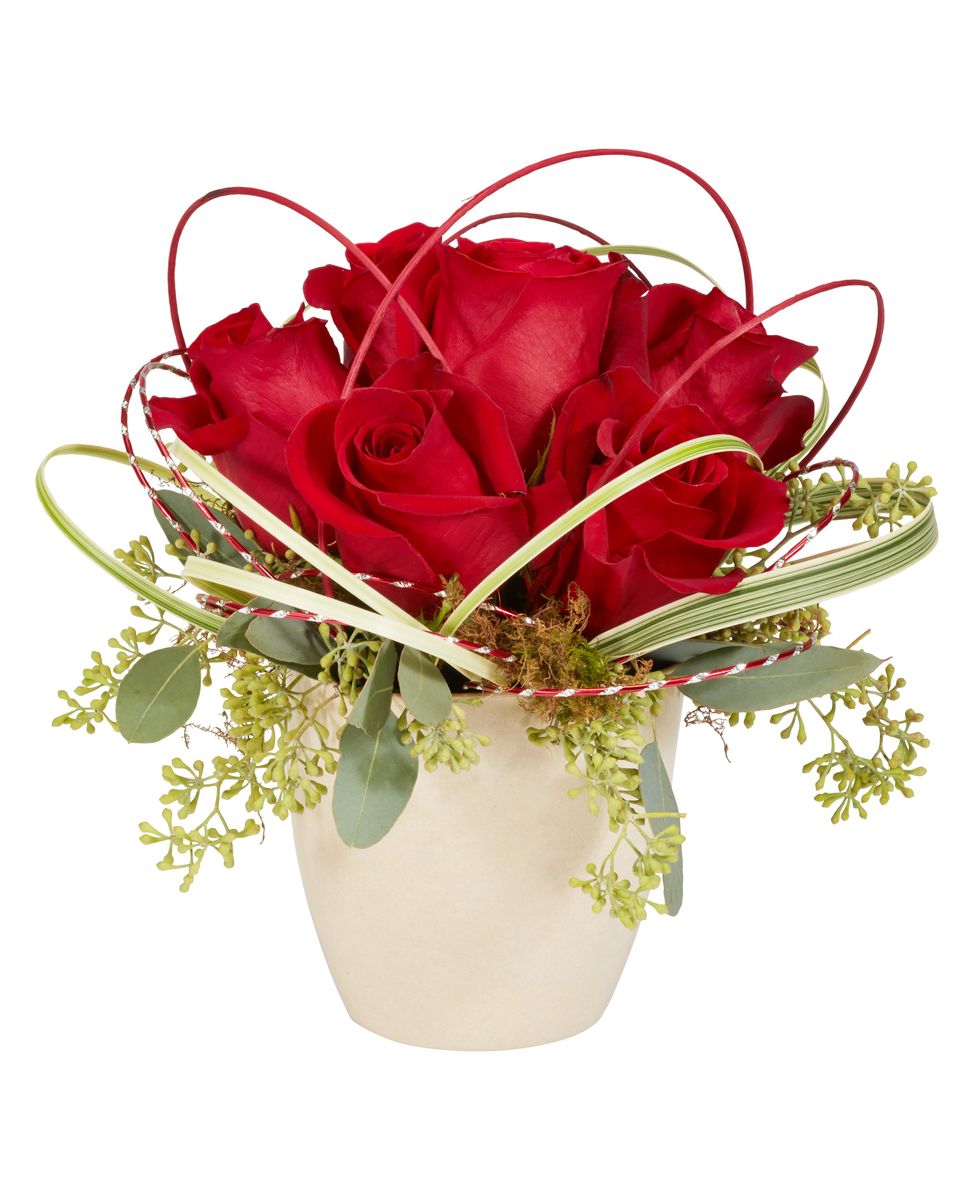 Add desired flower (in this case, roses) and finish with Midollino Sticks in coordinating color