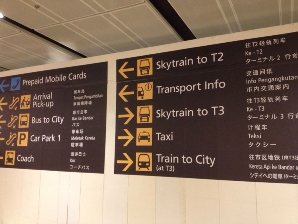 This is the surrounding when you get off the Sky Train at Terminal 3. Don't be mislead by the signs "Sky Train to T1 or T2". They are meant for people waiting to board the train. We are already at T3