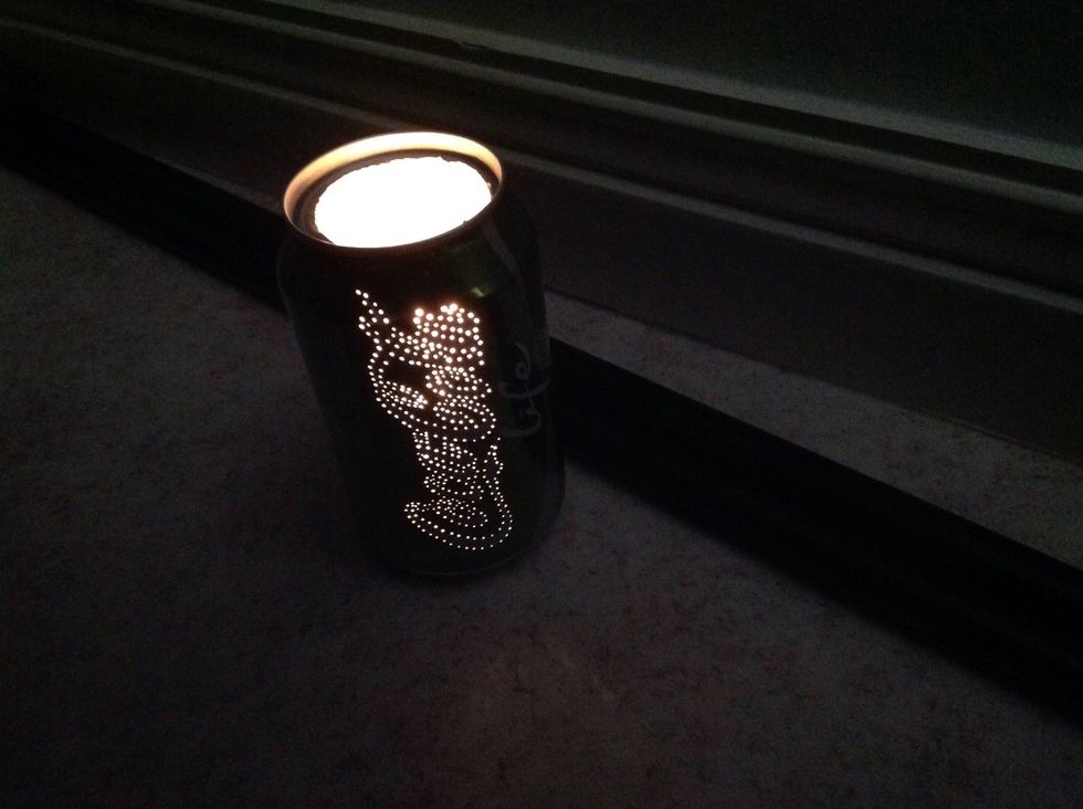 Du behöver en läskburk, konservöppnare och nål. En fil eller smärgelduk är också bra för att slipa till ev vassa kanter.