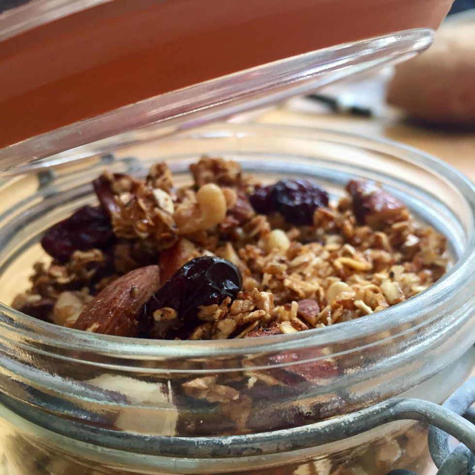 Le granola se conserve plusieurs jours dans un bocal hermétique (avec un joint, comme cela il reste bien croquant).
