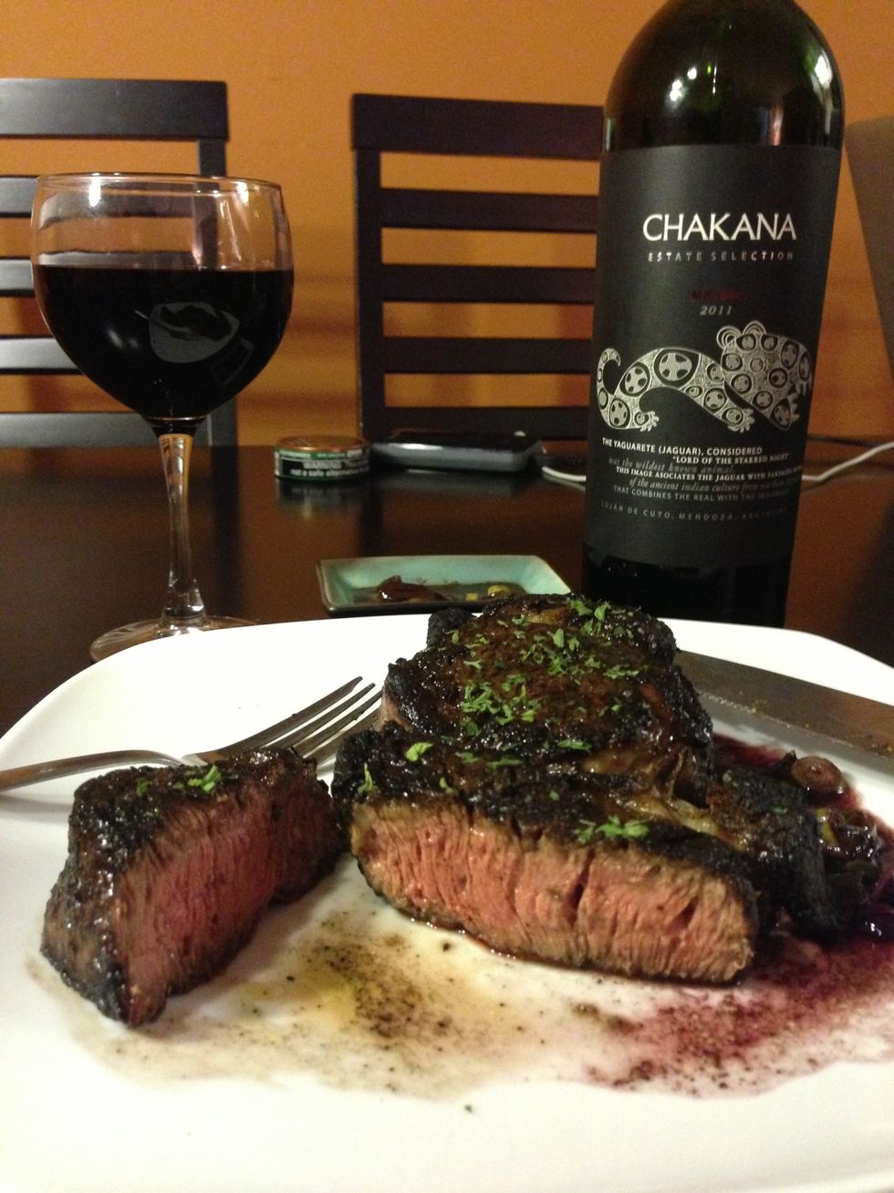 Garnish with parsley. I prefer my sauce on the side because the steak is so juicy. Oh and of course make sure you have a glass of your favorite red wine on hand. Enjoy!