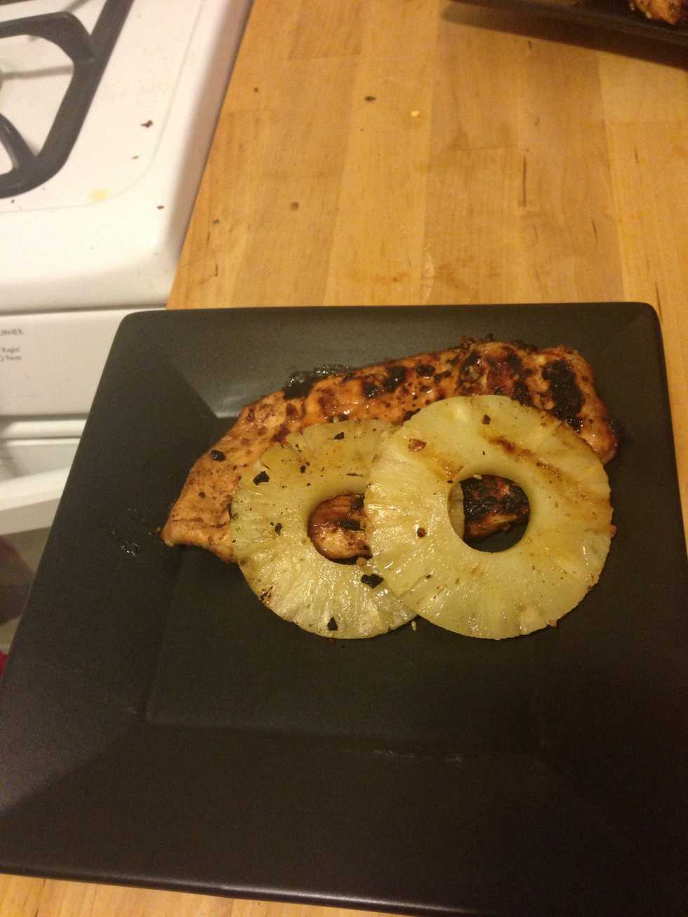 Deliciously grilled orange chicken garnished with pineapple. Serve with rice or your favorite side for a yummy and healthy meal.