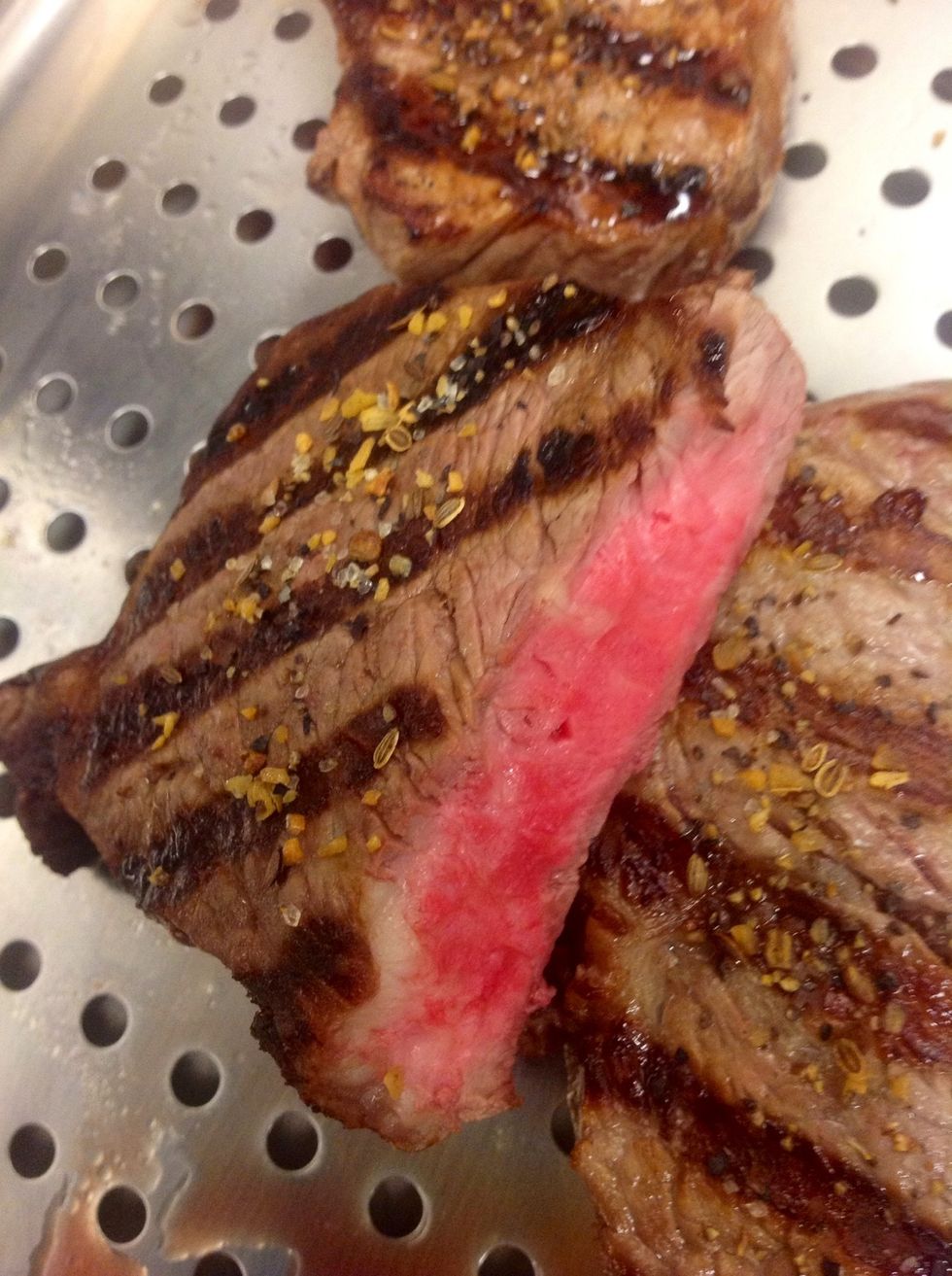 Evenly grilled to a perfect rare