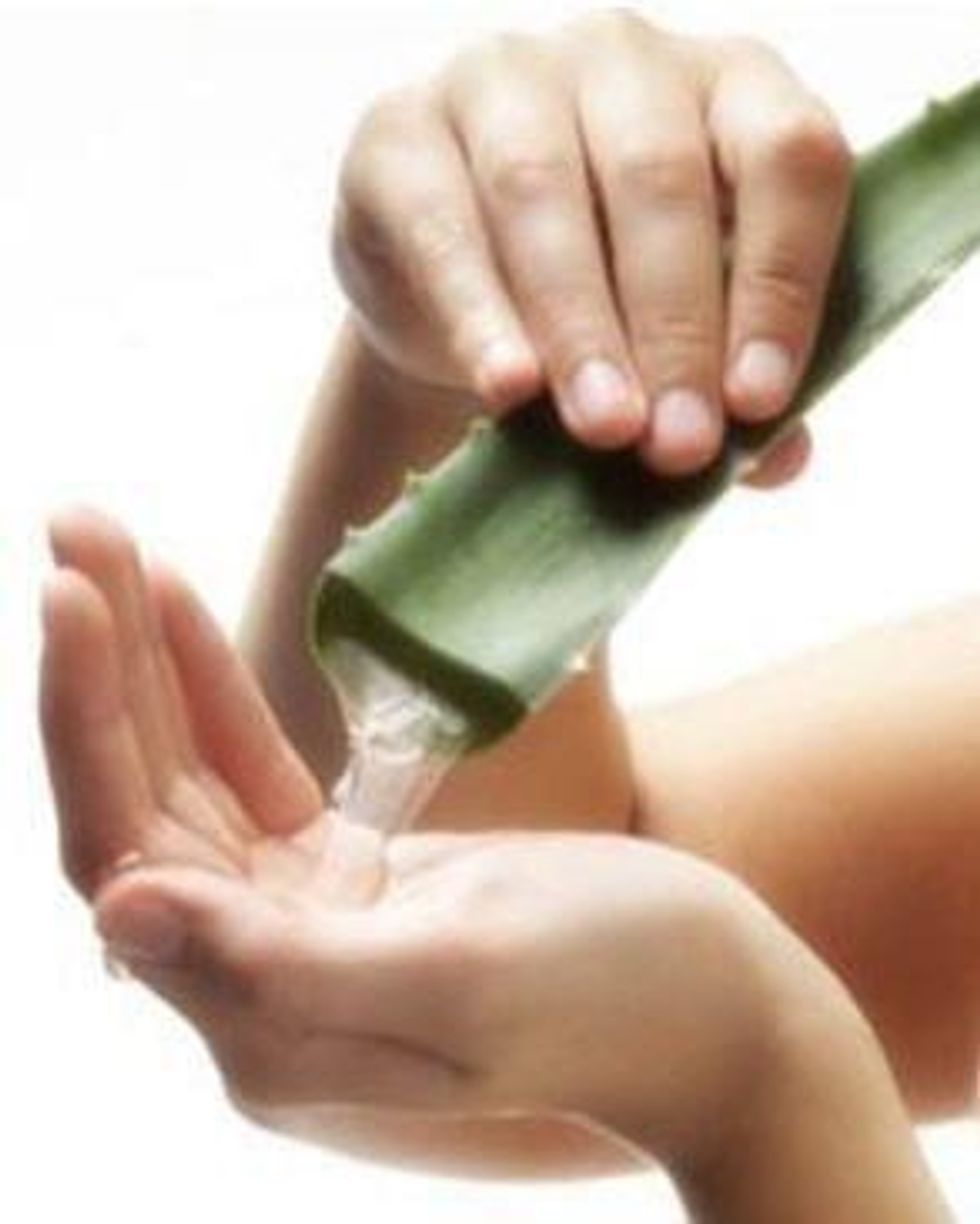 2. Get your aloe Vera 'peeled' off from one side. Scrape off the sticky salve-gel and place in bottle of conditioner. Until you have at least 1/4- 1/3 cup of aloe vera salve in the bottle)