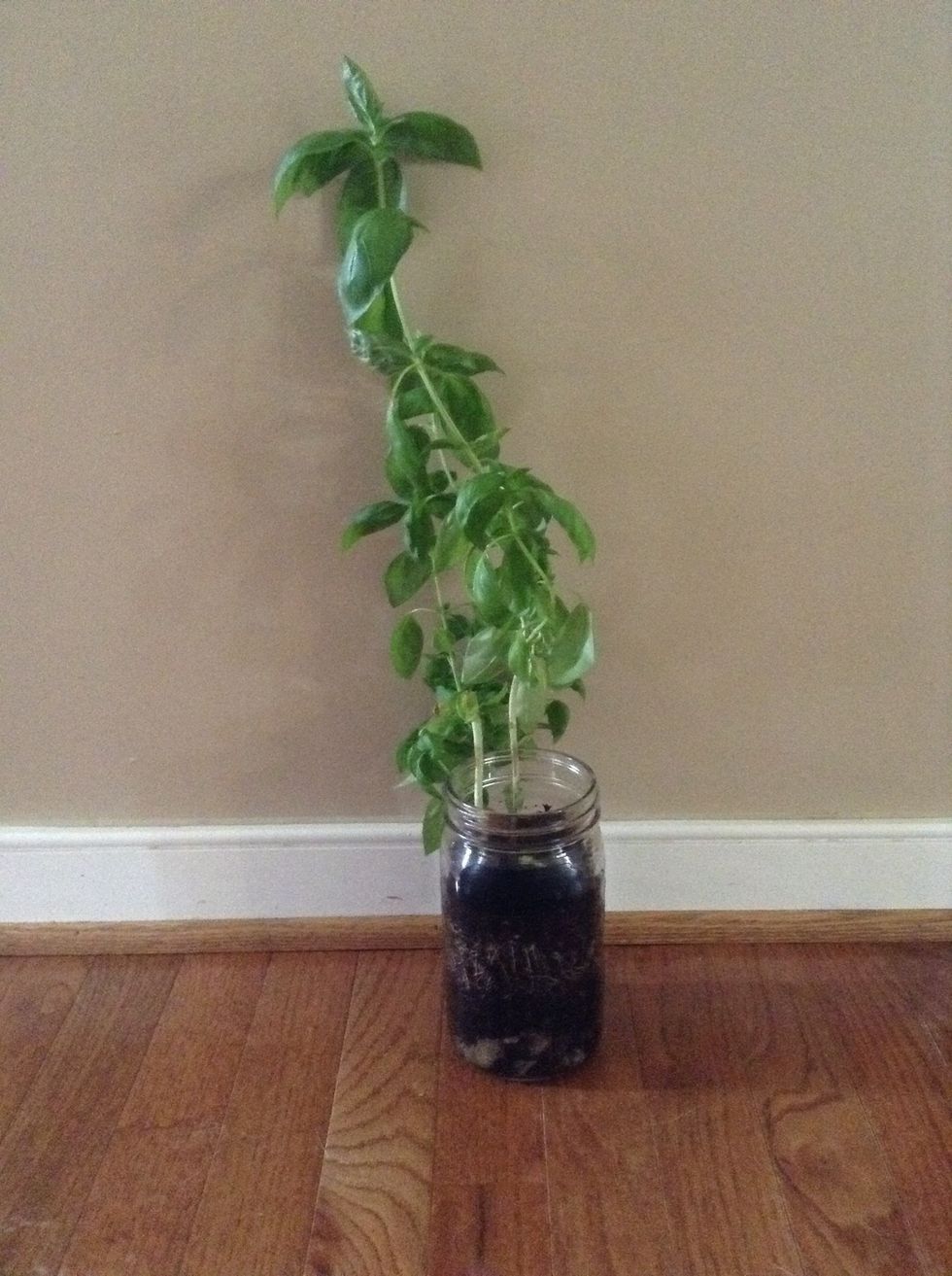 Fill a pot up with potting soil. Make a hole the size of your starter plant (basil) in your pot of soil Pack all of the soil around it.