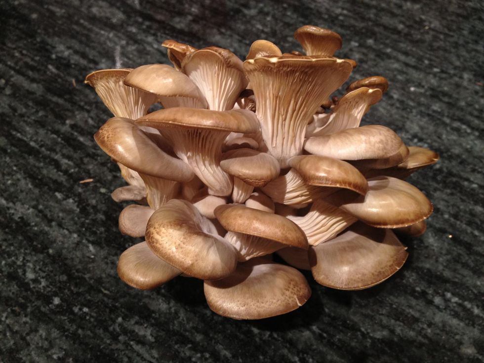 Start with a mushroom kit from Back to the Roots. Inside is the bag of coffee grinds and spores + a mister.