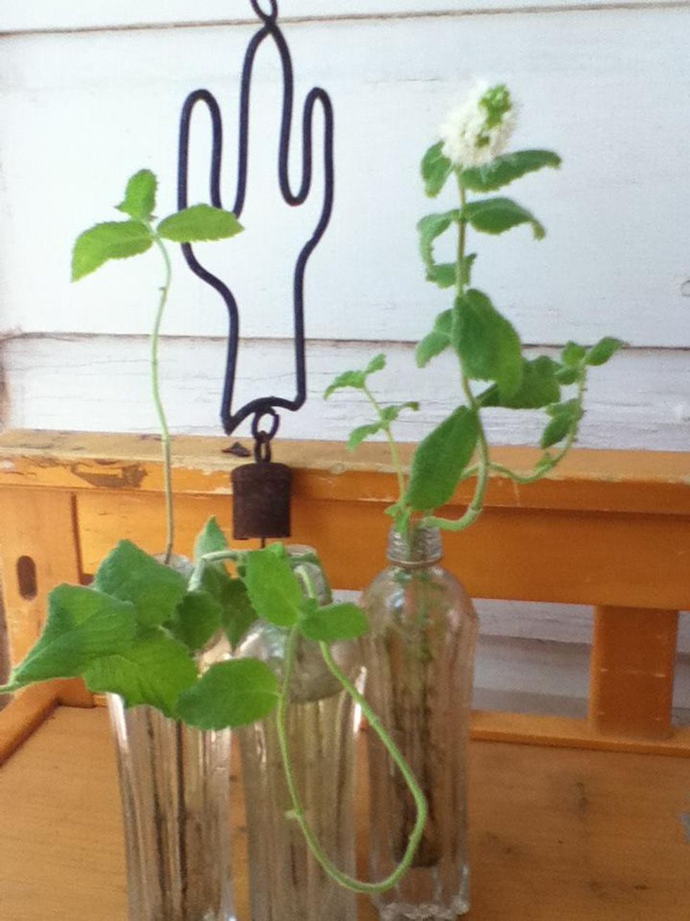 I used some sprigs pinched from my Apple Mint plant. Yes, I know mint is usually pretty hardy & can even take over your yard, but I don't have a green thumb & it's been a rough summer of bugs & heat