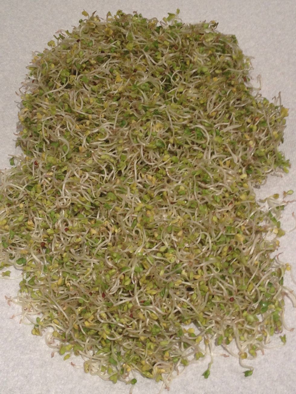 96 hours. At this point, expose the sprouts to indirect sunlight for a day or two so they green up. Do not expose the sprouts to direct sunlight.
