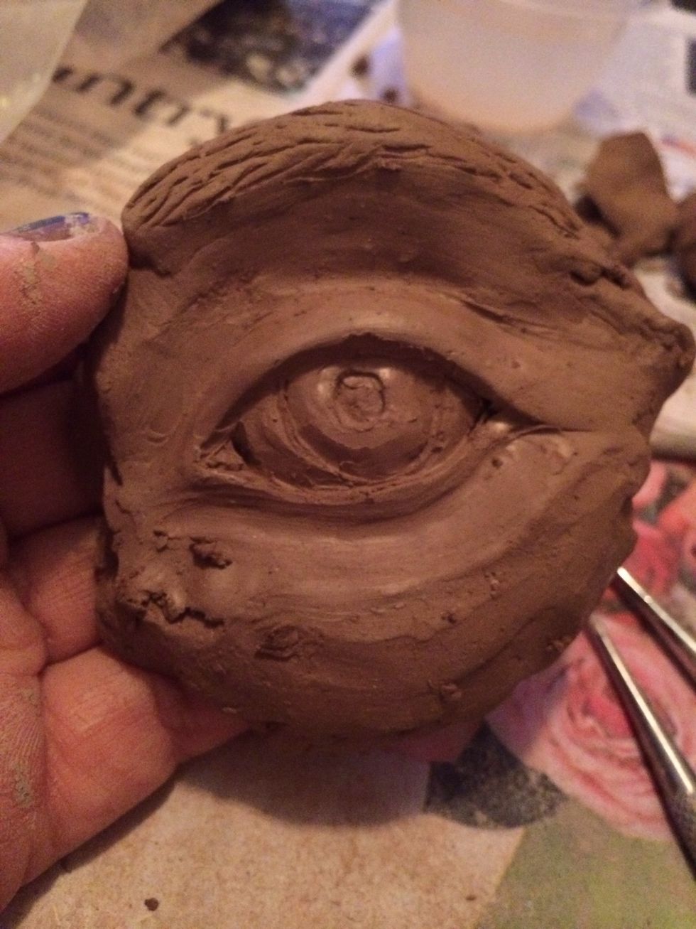 Think about how you would like to show the the iris and pupil. This can be drawn or sculpted into the clay. Normally this detail would be highlighted by several value changes which can't be shown here
