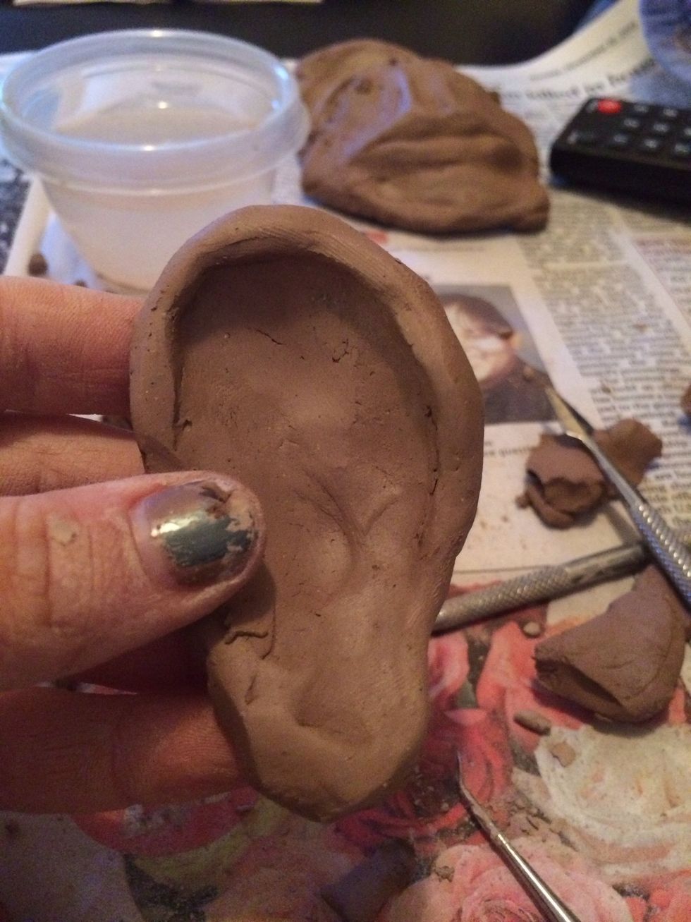Basic ceramic building of a nose, eye, ear, and mouth.