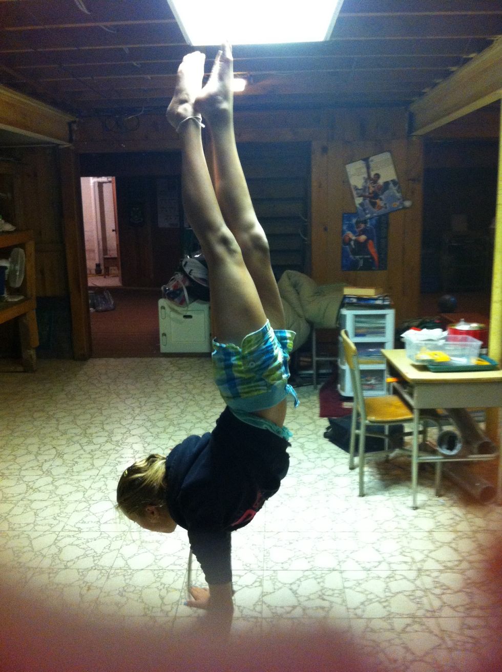Keep doing whip kickers untill u get up far enough to hold youself up its better if you have someone spot you doing a handstand. ( spot= the girl in pink is my spotter) she is my spotter.