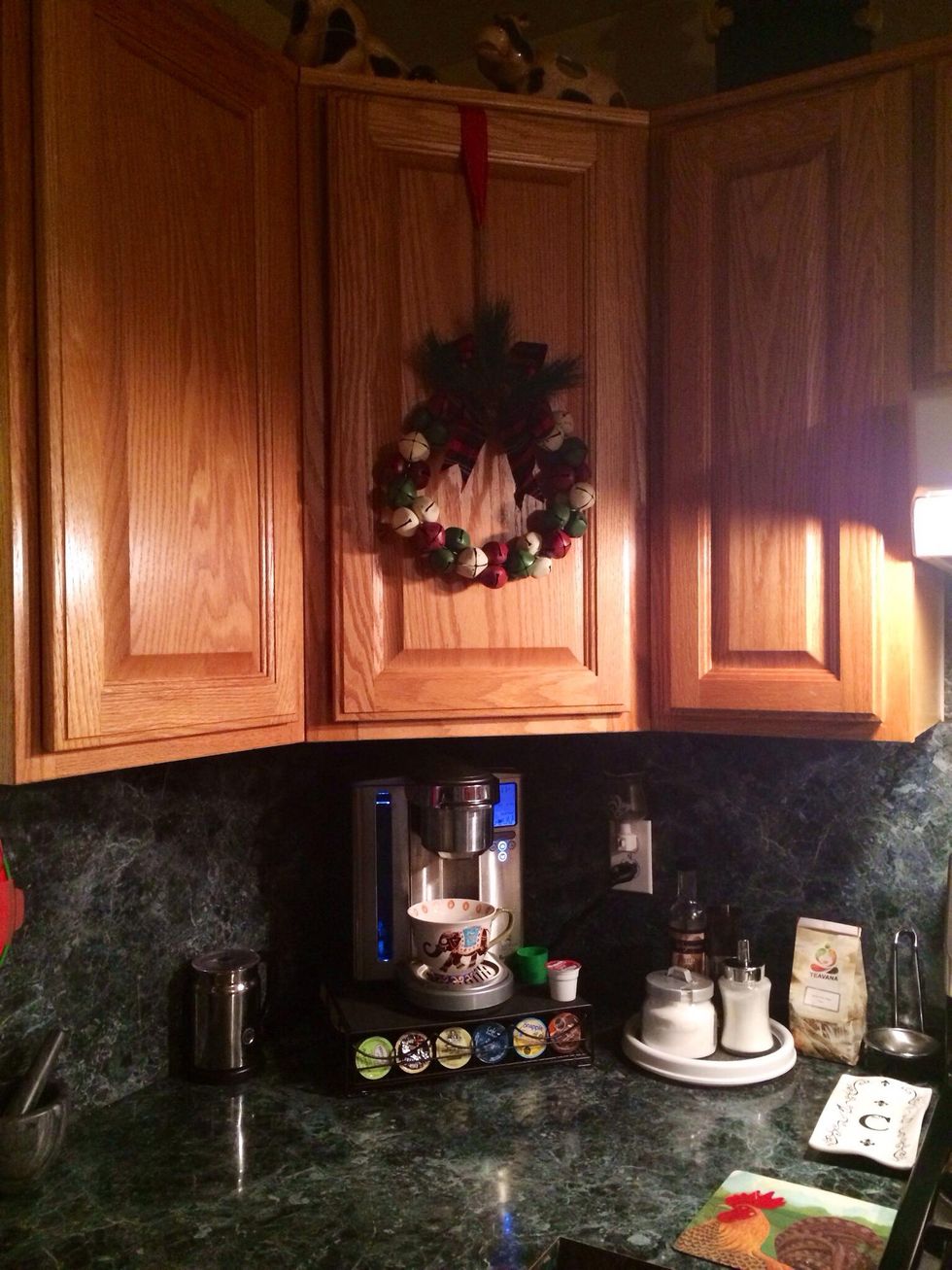 This is a very inexpensive way to dress up your kitchen cabinets for Christmas or Easter etc..😉 Do this on one or all of your cabinet doors.☺️