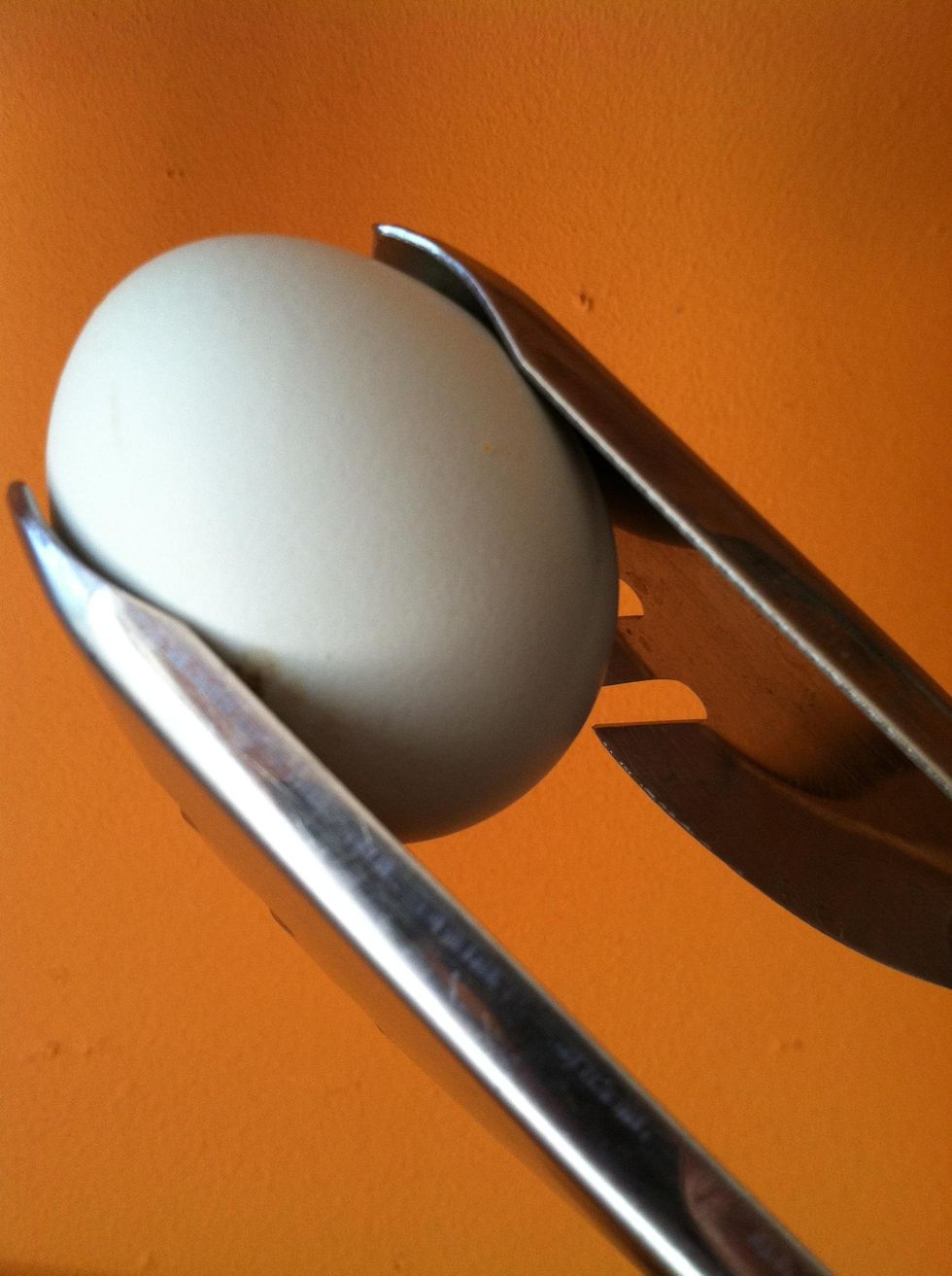 (take eggs from disgruntled hens ;)Bring water to strong boil.Place egg(s) in boiling water.Boil egg(s) for 8 minutes.Remove egg(s).Peel shell. (run under cold water if too hot)Enjoy!(feed discarded shells to chickens ;)