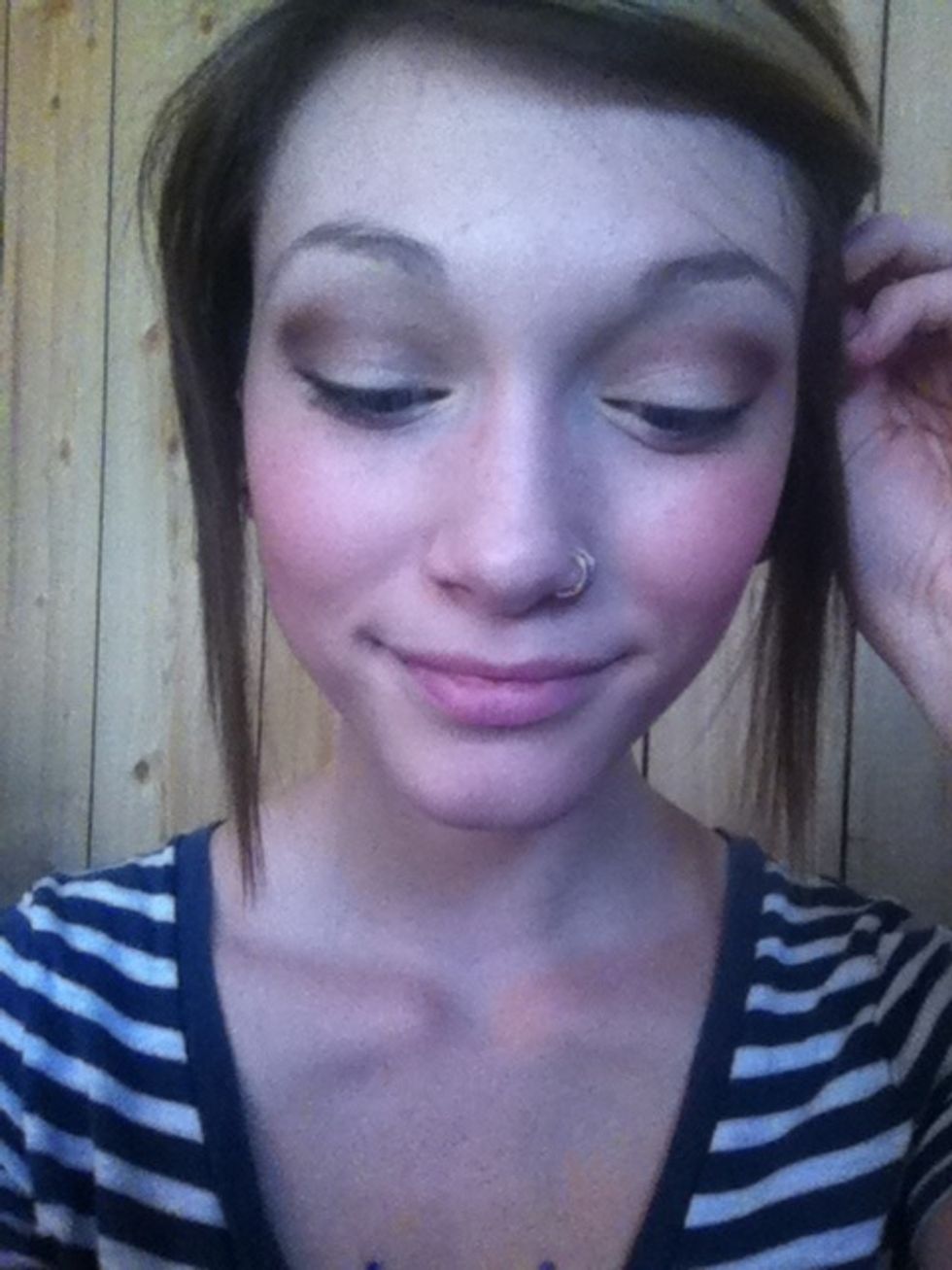 I use this nude shimmer color for my lid. ELF palette. Flat brush.
