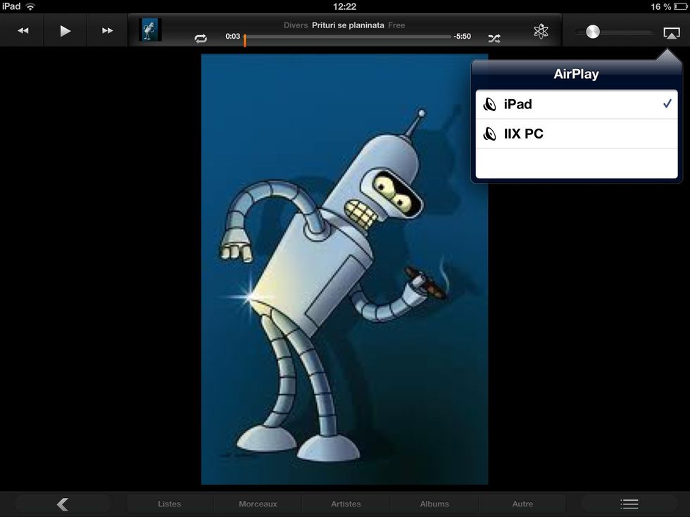 Finally to go to your ipod or youtube on your ipad or iphone you should have the airplay logo. You just have now to connect speakers to your pc.