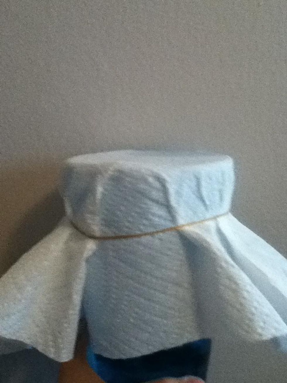 Fill glass with water, about 450 mm.Use standard square piece of paper towel.Cover the top of the glass with paper towel.Strap rubber band if needed and then drink the whole glass.Poof! Your hick-ups are gone!