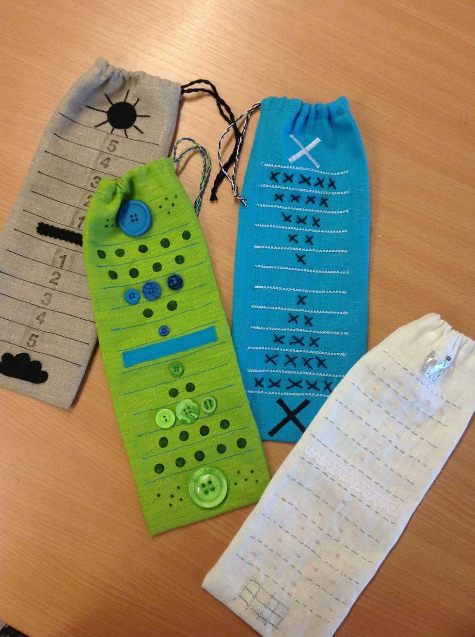 I strecken syr du för hand eller på maskin, målar med textilfärg eller permanent penna eller.....