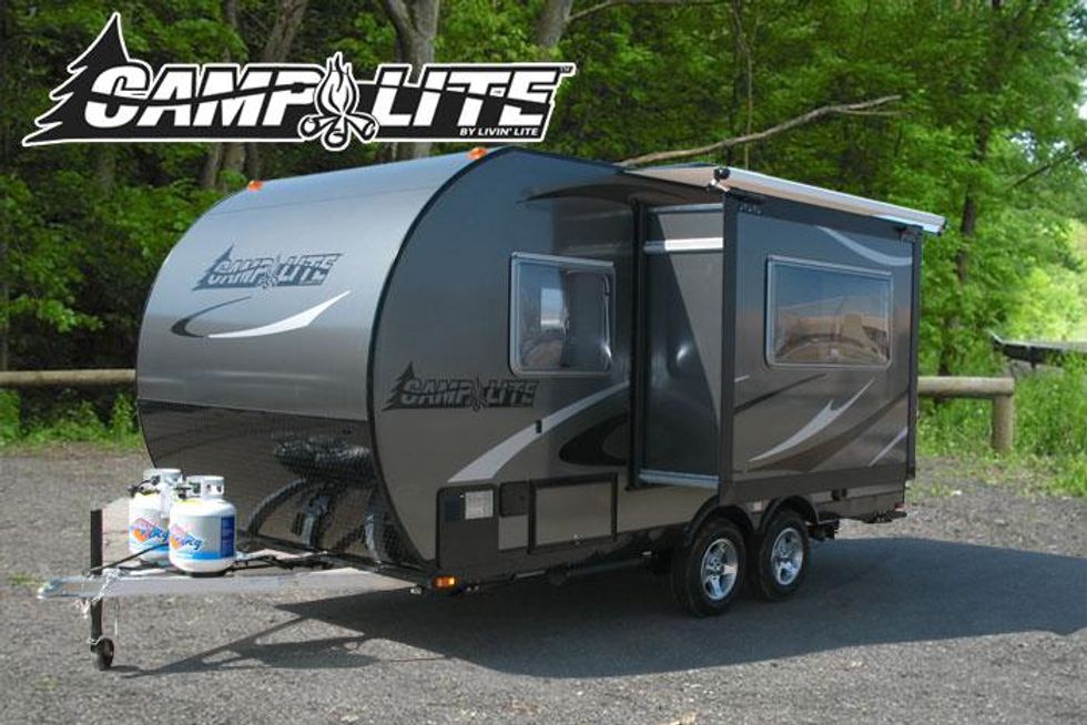 One light-weight travel trailer with hitch lock (the yellow thing).