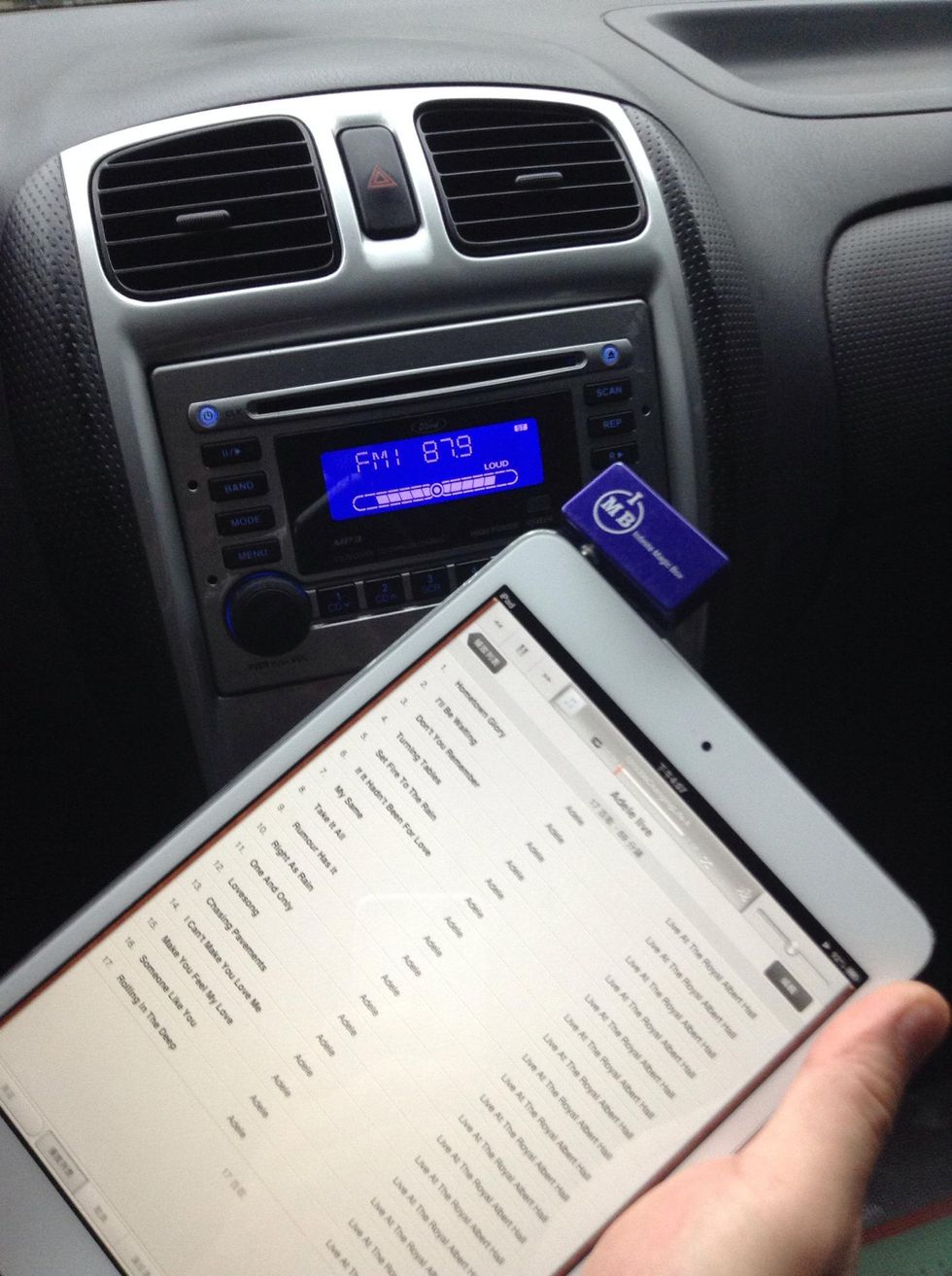 Connect your iPad mini to your car radio using a simple fm transmitter to broadcast the sound from your iPad mini to any fm radio on any car... from iPhoneFMTransmitter.com