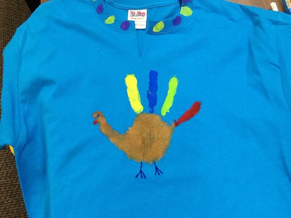 The t-shirt has been painted with your child's handprint and will be sent home.