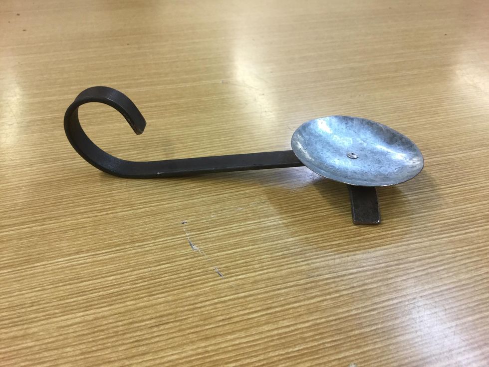 Now using you pop rivet, get all the things you have created (feet, scroll, wax catcher) and align them all together. Once this is done pop rivet them together.