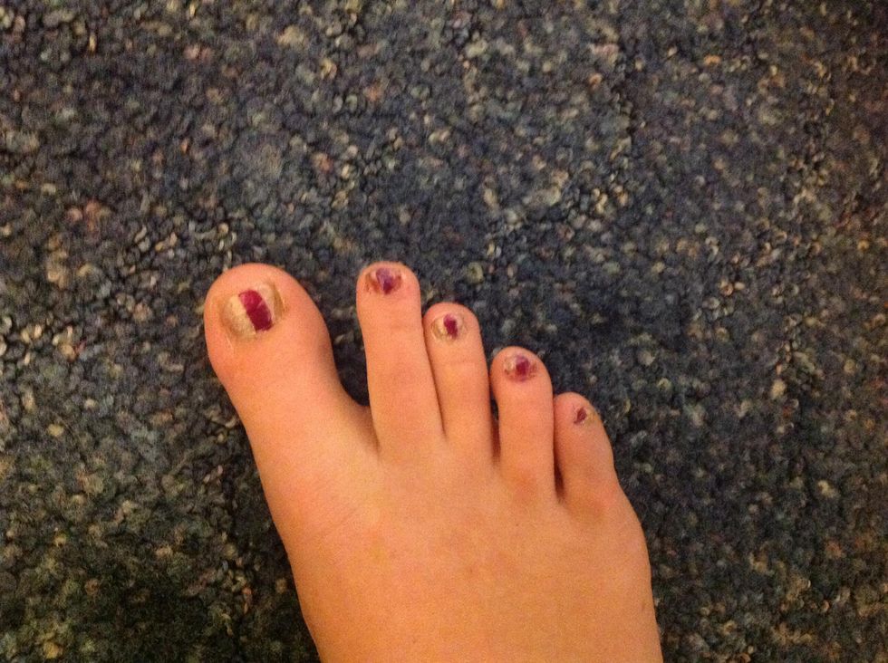 Dunk your feet in cold ice water to set the paint. The dry your nails, carefully.