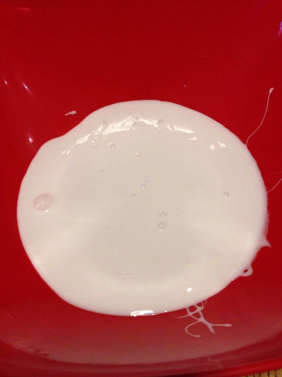 Pour half a cup of water into your bowl with the glue