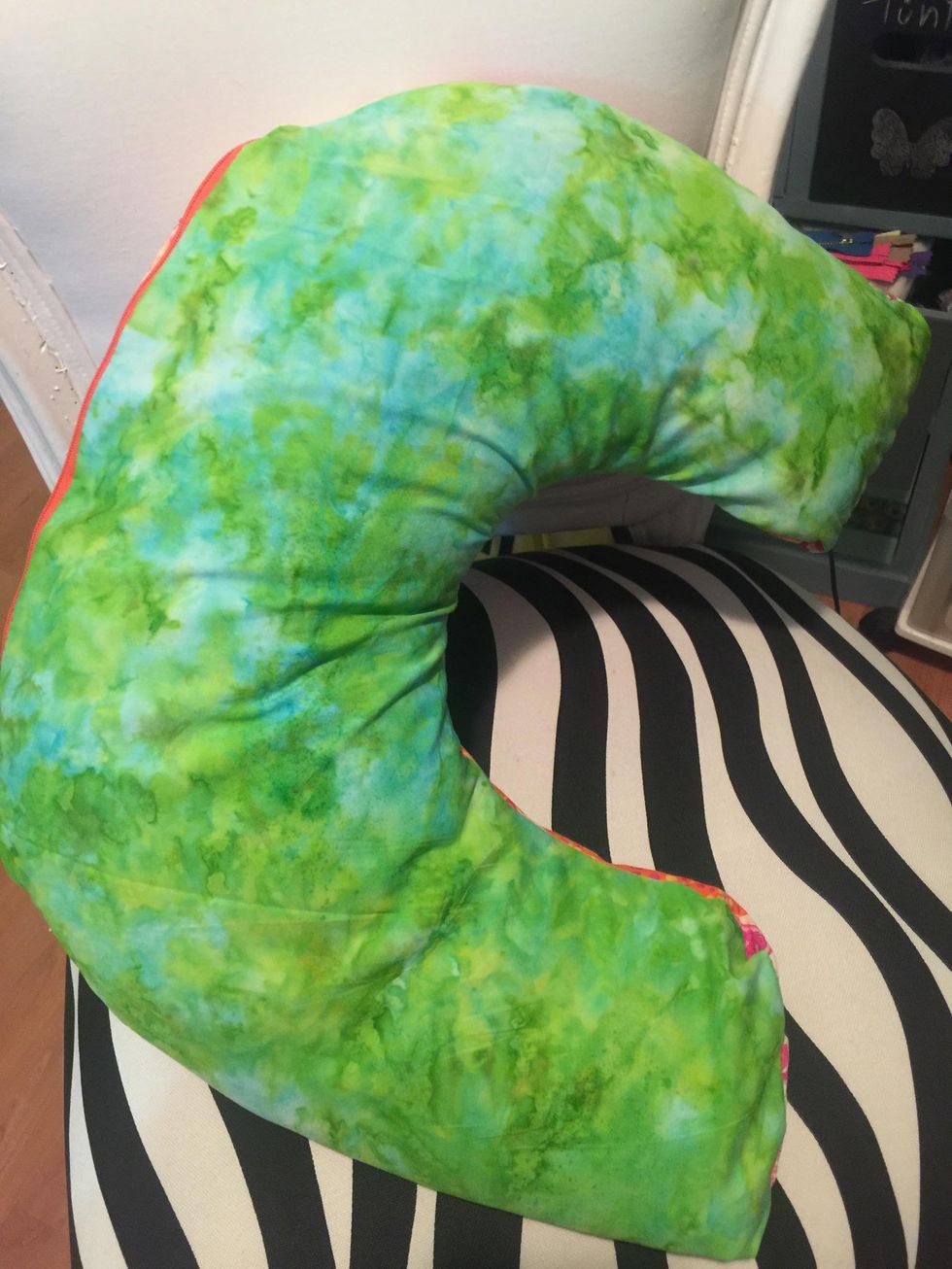 Pin it and draw it I used two kinds of cotton fabric one green, and the other one is orange use colorfull