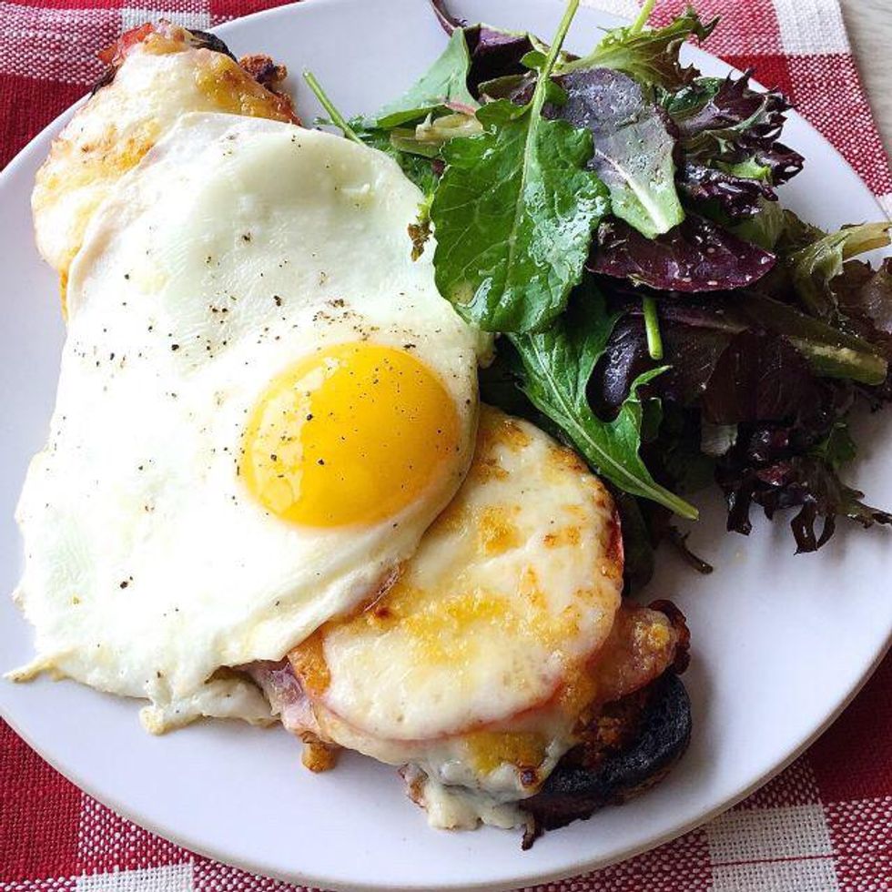 Cook eggs, basting regularly with butter, until whites are set and yolks are still slightly runny, about 4 minutes. Season with salt and pepper, and top each sandwich with an egg.