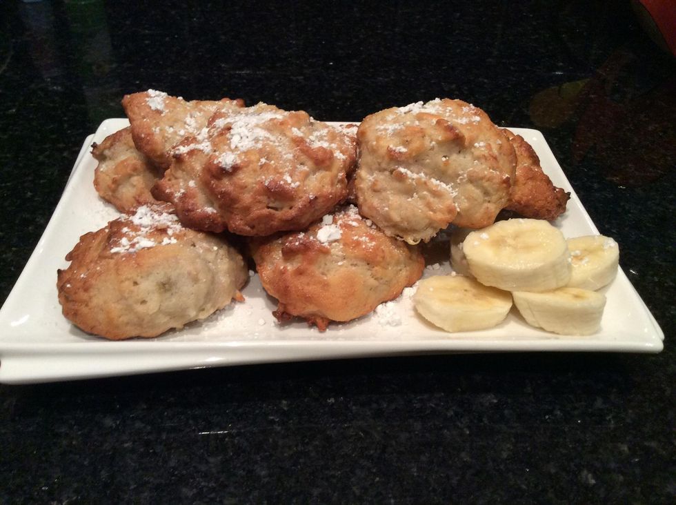 Enjoy. You have made banana biscuits. Rating out of 10: 9 1/2 out of 10 because the biscuits where a bit soft and not hard like biscuits should be, but it tasted really good