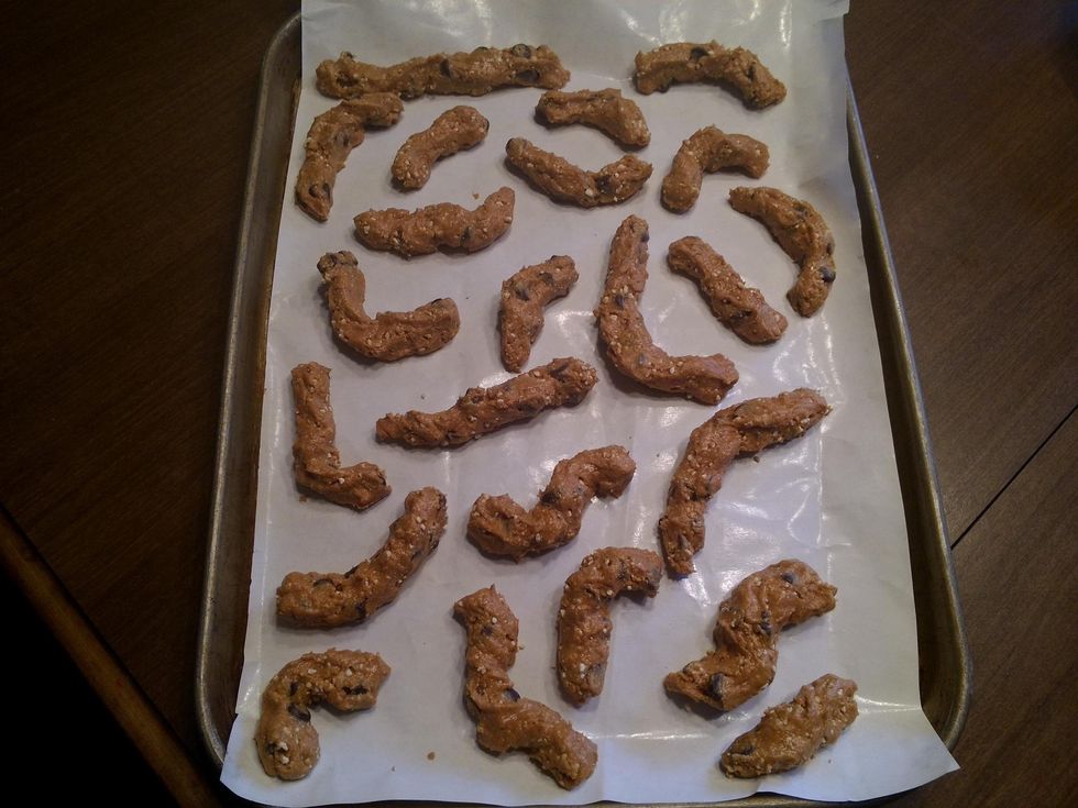 The way to make the shape is to grape a small portion and roll it into a long shape. You will want to have you pan ready with
