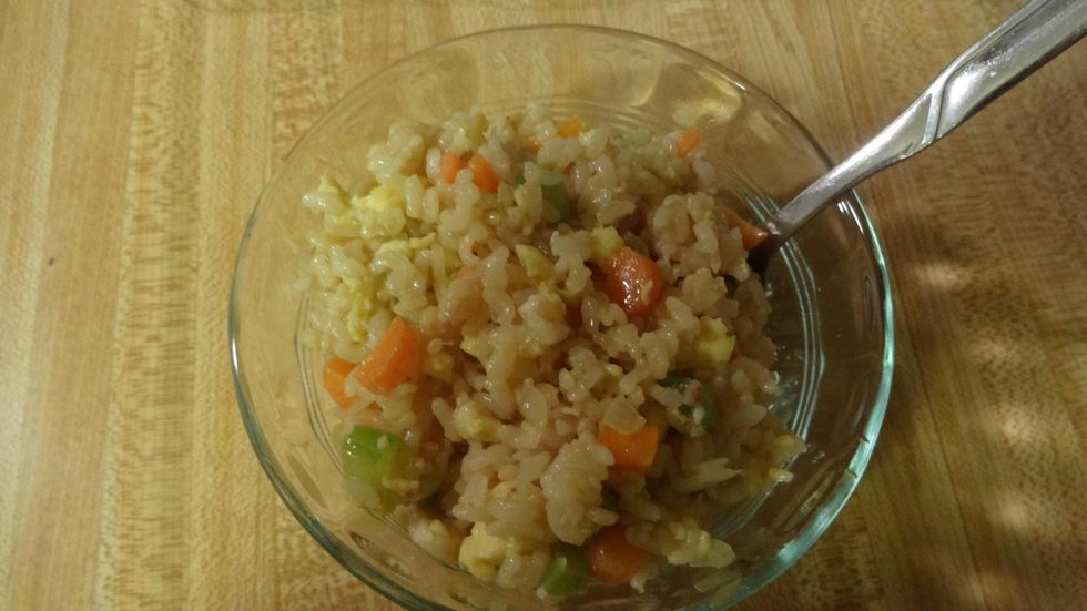 Hello! This is a snap guide on making delicious, nutritious and happy rice meal, from the Benihana company. Enjoy! (Sorry, the pictures aren't the best)